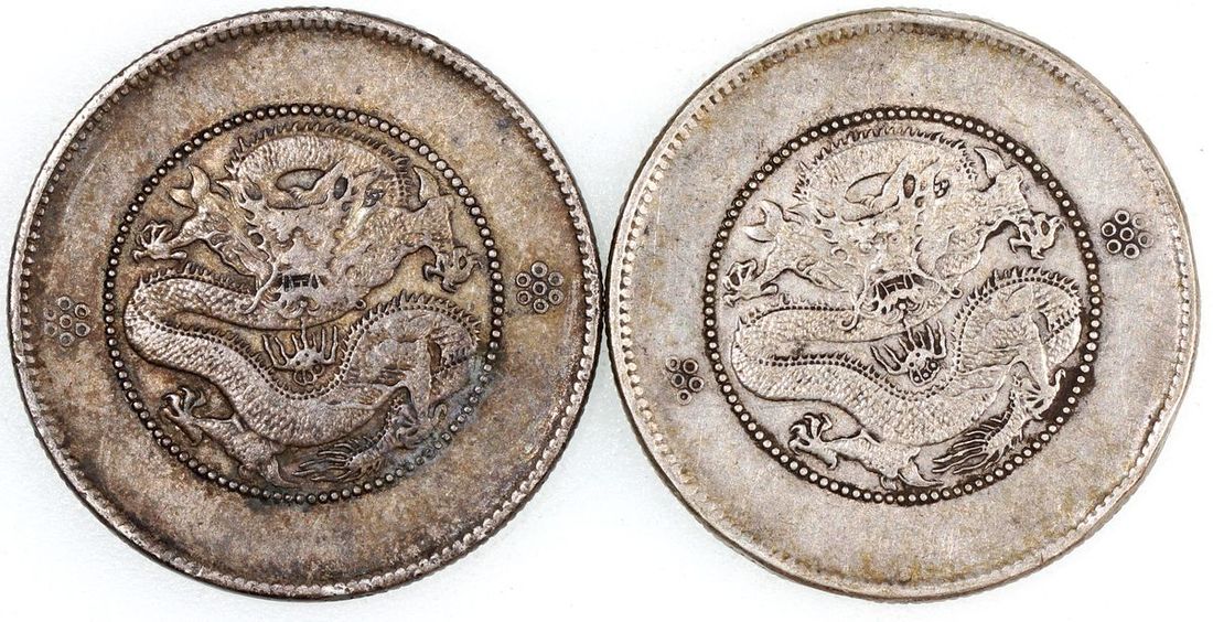 China, Qing Dynasty, Yunnan Province, a pair of silver 50 cents, Guangxu Yuan Bao, new dragon, (LM-422), both toned, about uncirculated.(2)