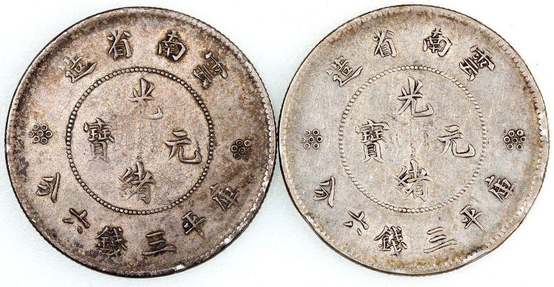 雲南省造光緒元寶庫平三錢六分一組2枚,新龍,AU品相