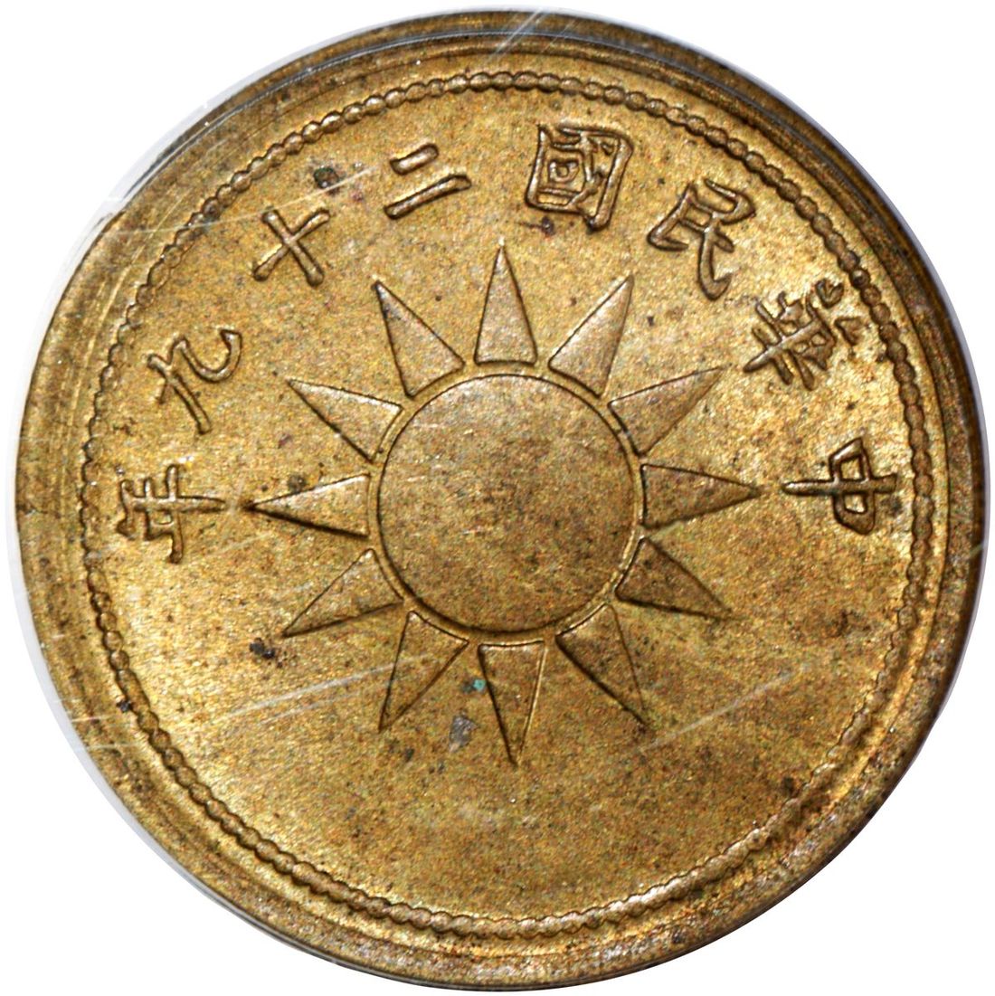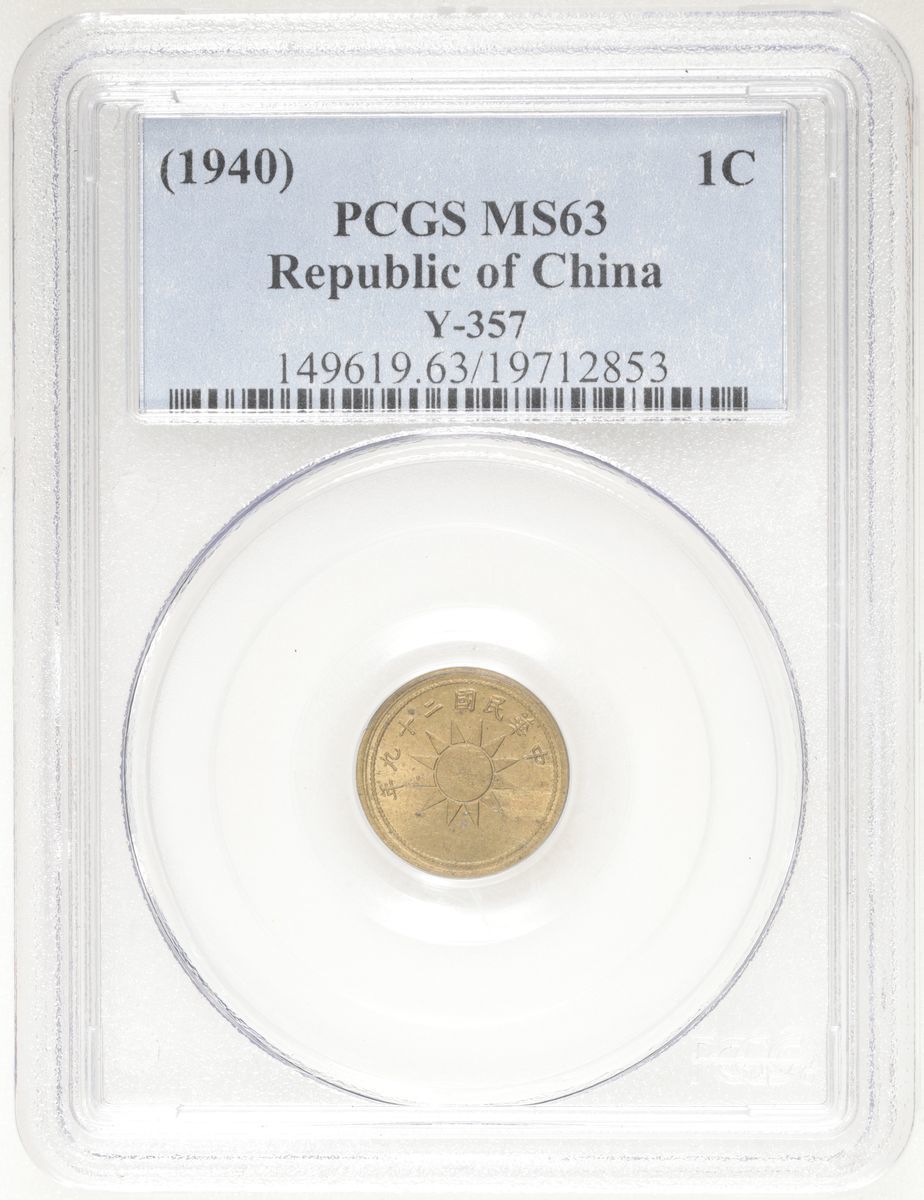 China, Republic, [PCGS MS63] brass 1 cent, Year 29 (1940), (Y-357), Cert. #19712853