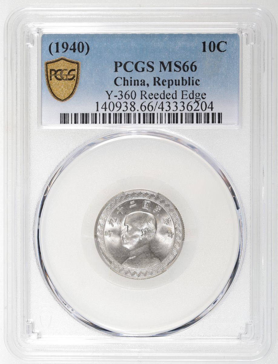 China, Republic, [PCGS MS66] copper nickel 10 cents, Year 29 (1940), reeded edge variety, (Y-360), cert. #43336204, nice glacial blue toning