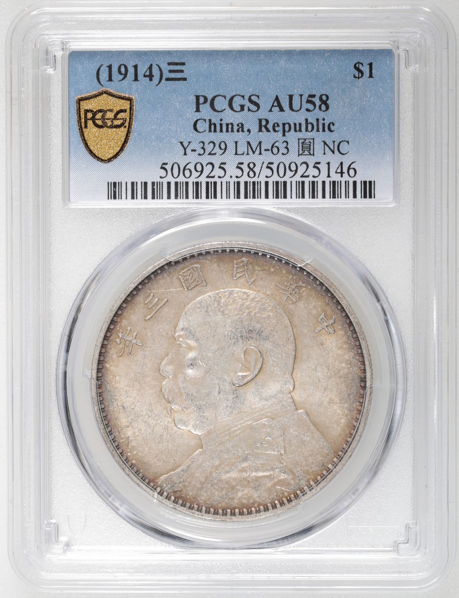 China, Republic, [PCGS AU58] silver dollar, Year 3 (1914), 'Fatman Dollar', 'Yuan' not connected variety, (Y-329, LM-63),