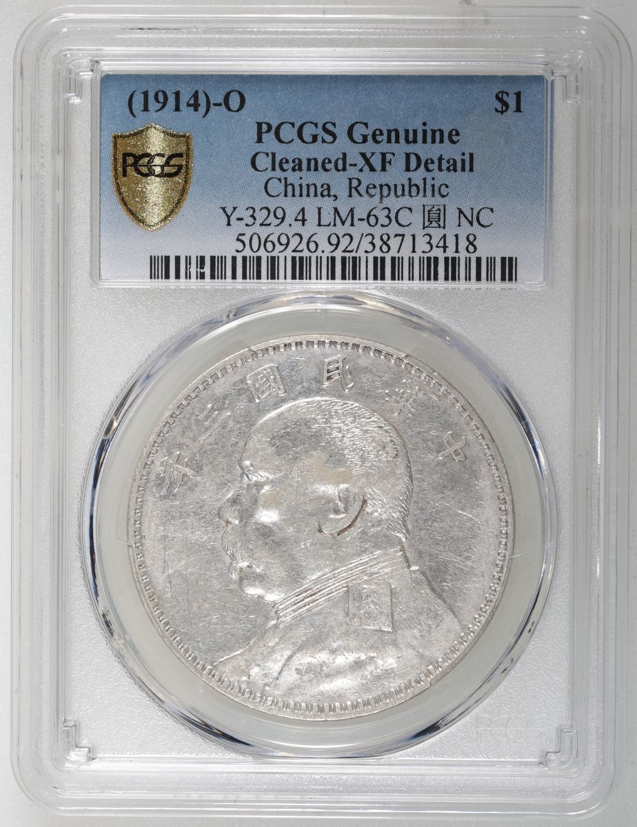 民國三年袁世凱像壹圓,'O'版,PCGS XF Detail, 有清洗