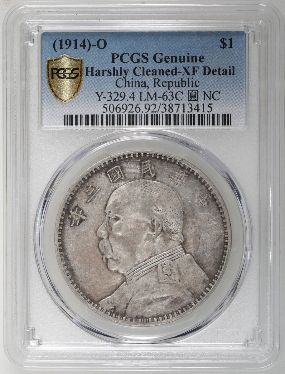 民國三年袁世凱像壹圓,'O'版,PCGS XF Detail, 有重度清洗