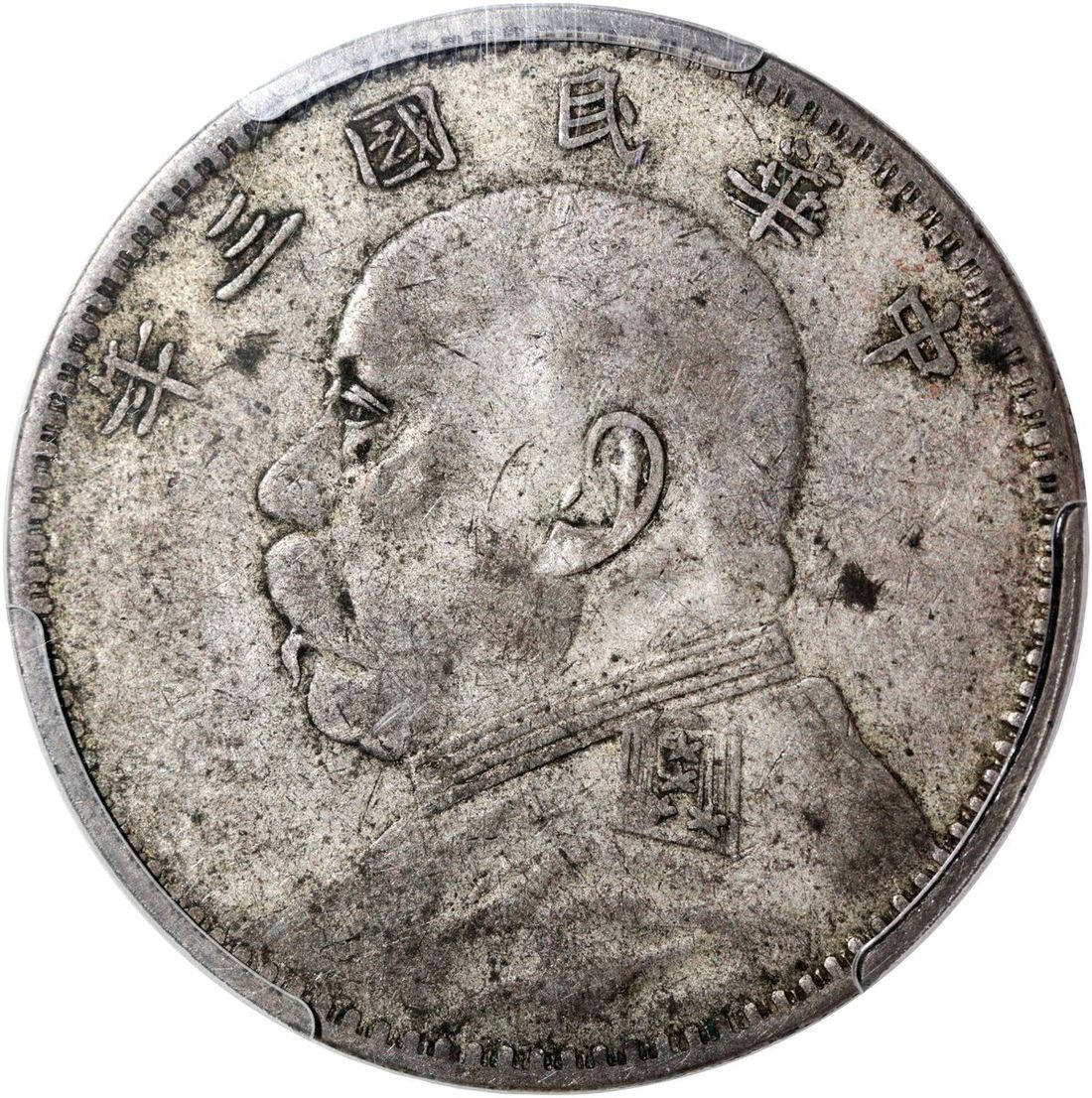 民國三年袁世凱像壹圓,甘肅直筆民,PCGS VF 35