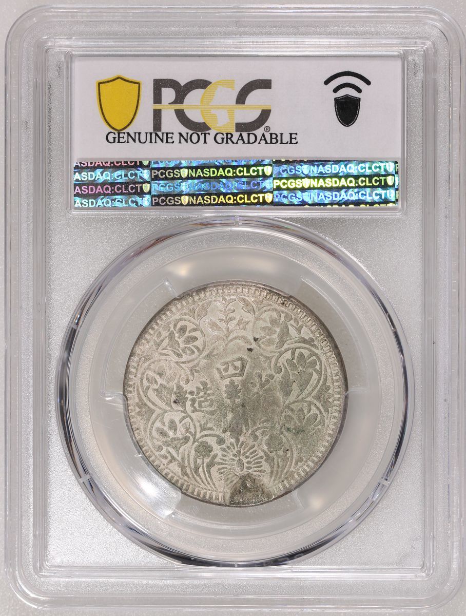 China, Republic, issued for Tibet, [PCGS AU Details] countermarked Szechuan Rupee, 11.18g, undated (1939-1942), Chengdu mint, small head of the Chinese emperor Guang Xu with collar, rev. vertical rosette with legend 'Si Chuan Sheng Zao' (made in Sichuan), within wreath derived from those found on Indian Rupees, without leaf in north-east position (YZM 451-472; LM 359B; KM 3.2), PCGS AU Details (Mount Removed), cert. #45306757, Wolfgang Bertsch Collection. Scarce.