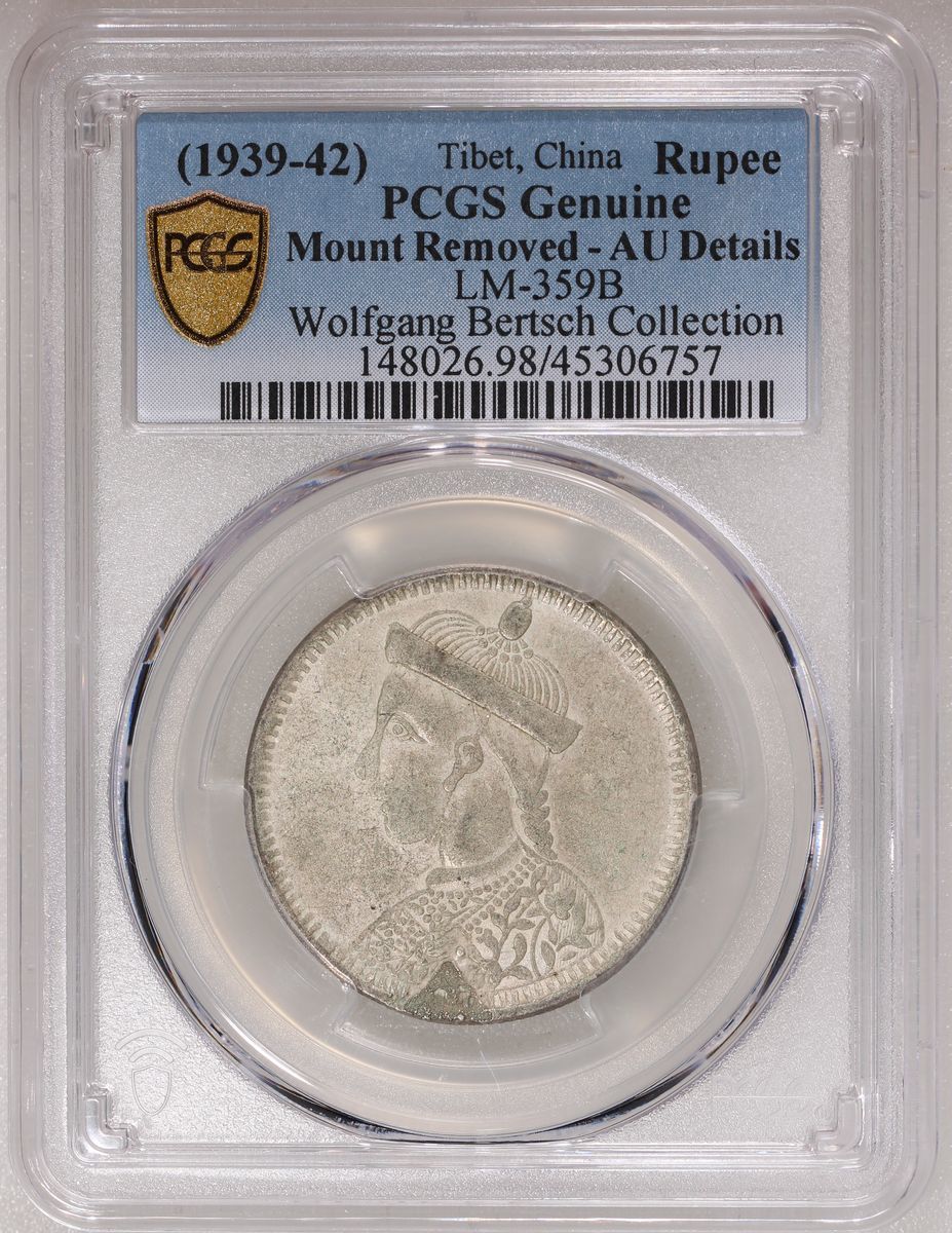 四川光緒帝像盧比四期,有領直花,PCGS AU Details,鑲嵌經移除,Wolfgang Bertsch舊藏,稀有