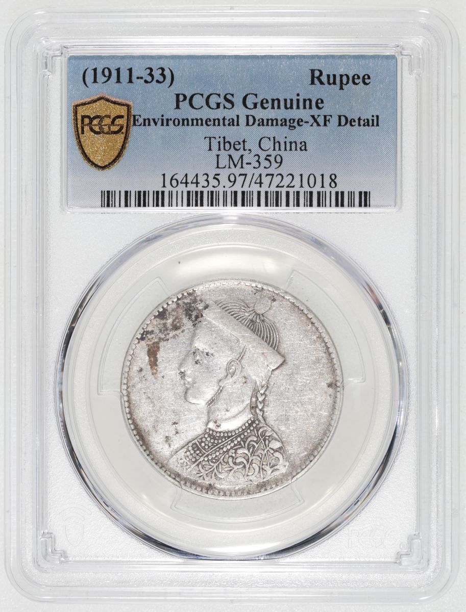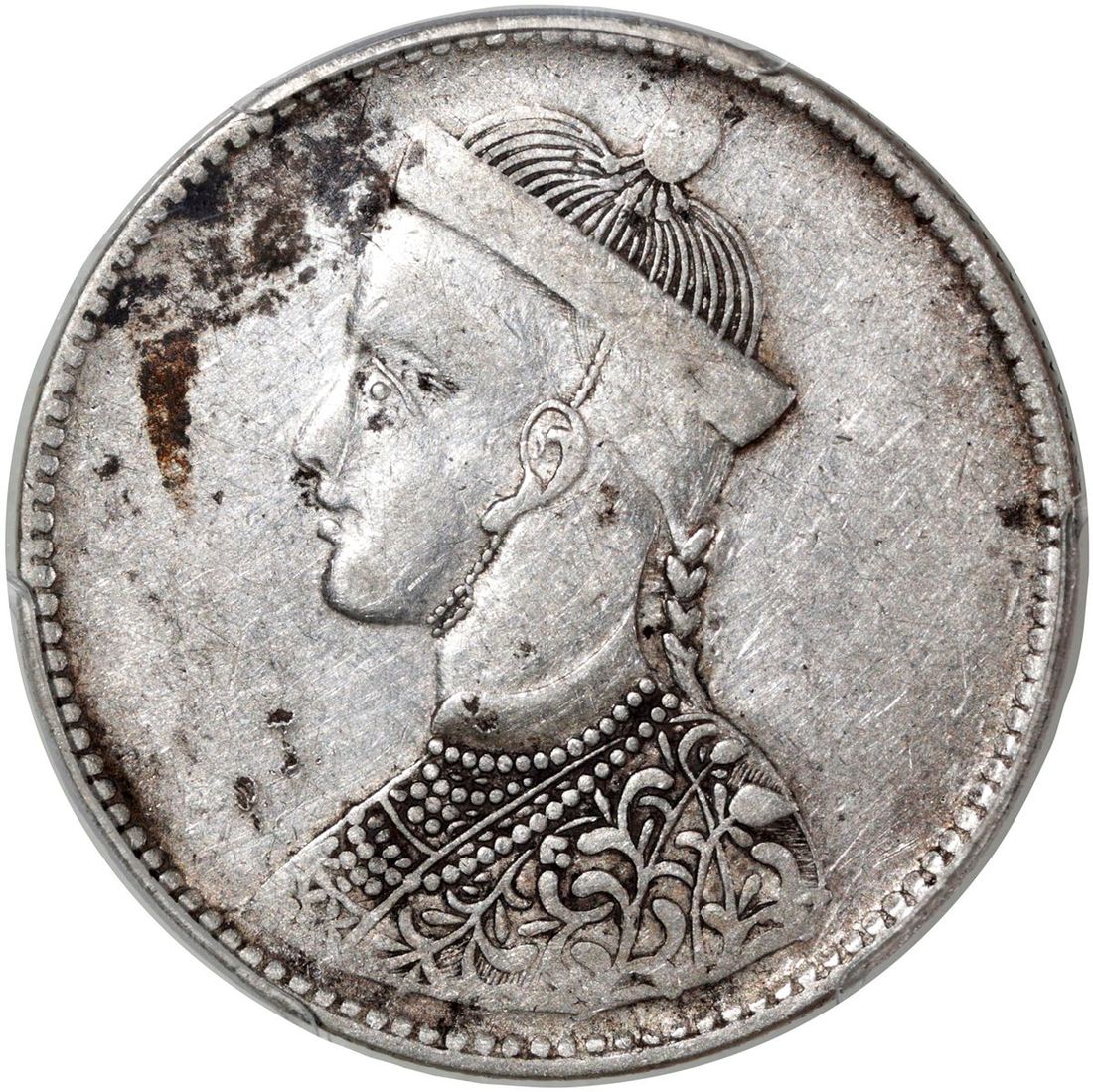 China, Tibet, [PCGS XF Detail] silver Szechuan rupee, ND (1911-33), bust of Guang Xu with collar, reverse vertical rosette type, (LM-359),