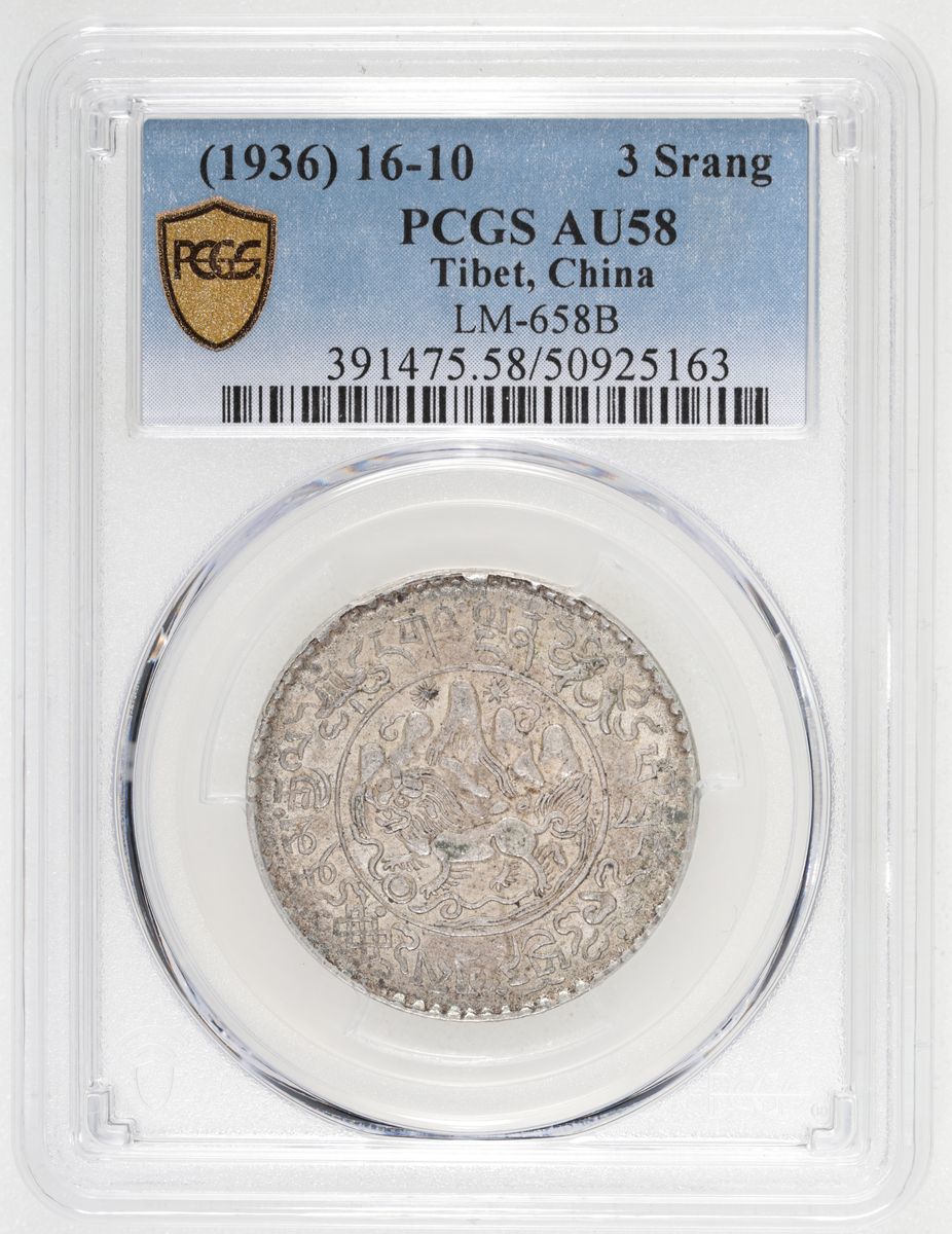 China, Republic, Issued for Tibet, [PCGS AU58] silver 3 srang, BE16-10 (1936), (LM-658B), Cert. #50925163