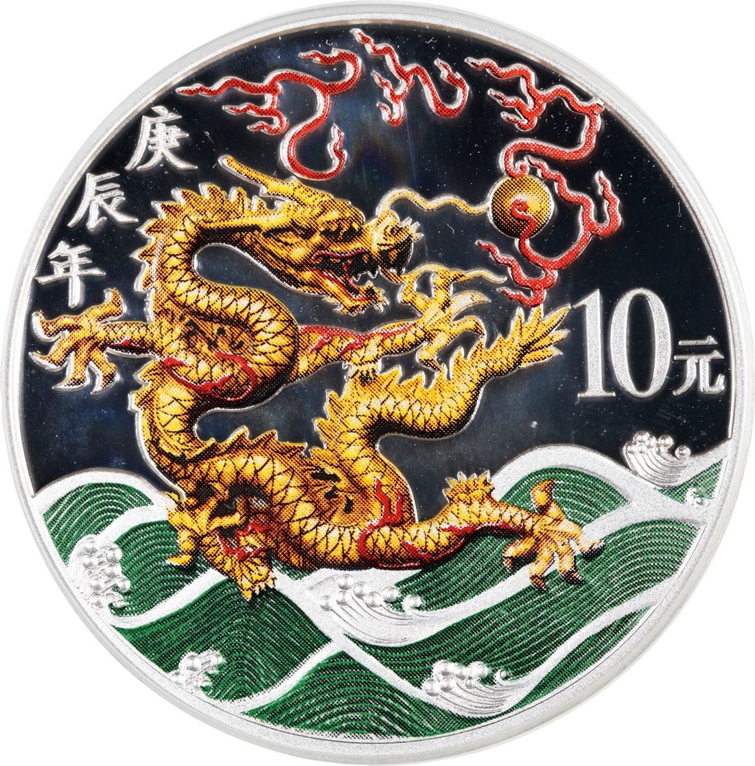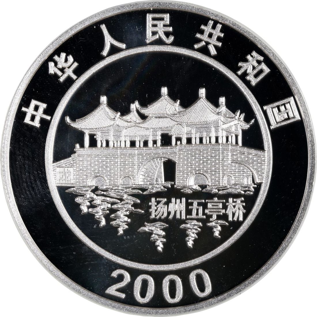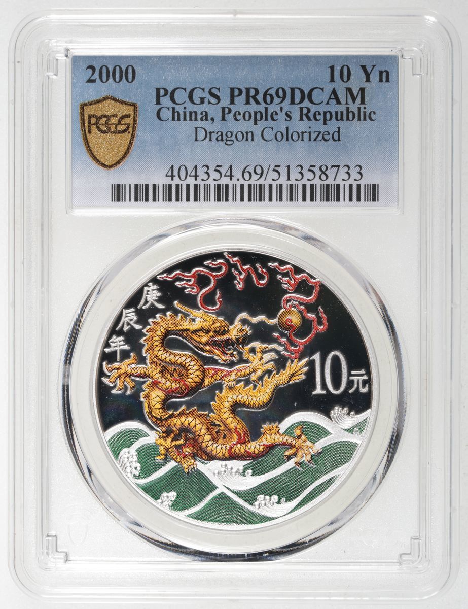 People's Republic of China, [PCGS PR69DCAM] colourised silver proof 10 yuan, 2000, Year of the Dragon commemorative issue, Five-Pavillion Bridge on reverse, ASW 1oz, Cert. #51358733, mintage of 100000