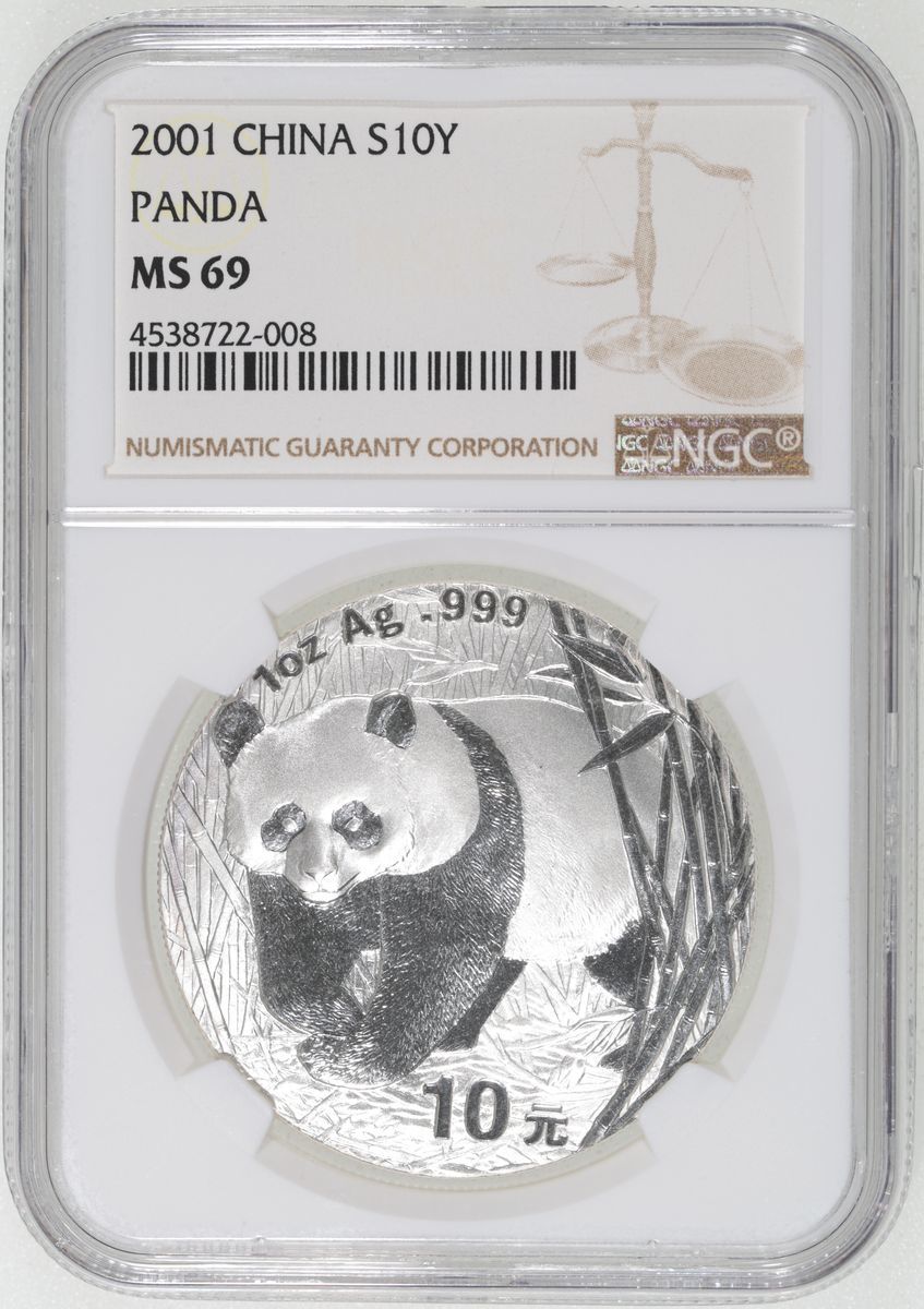 People's Republic of China, [NGC MS69] silver 10 yuan, 2001, asw 1oz,
