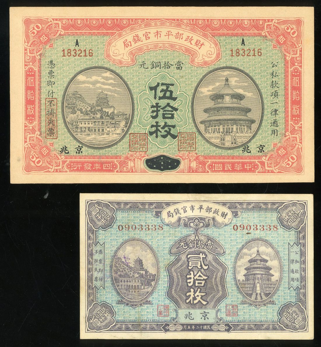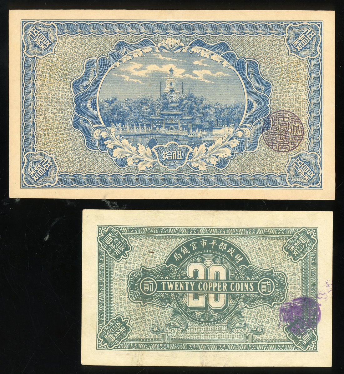 Market Stabilization Currency Bureau, China, a pair, including 50 coppers Year 4 and 20 coppers Year 12, both Ching Chao issue,