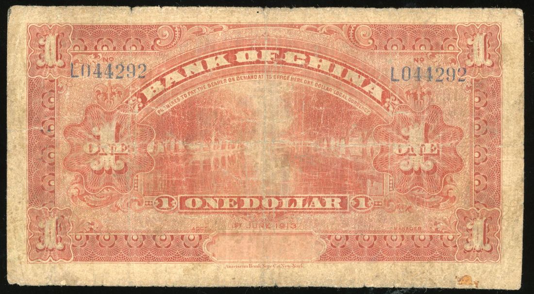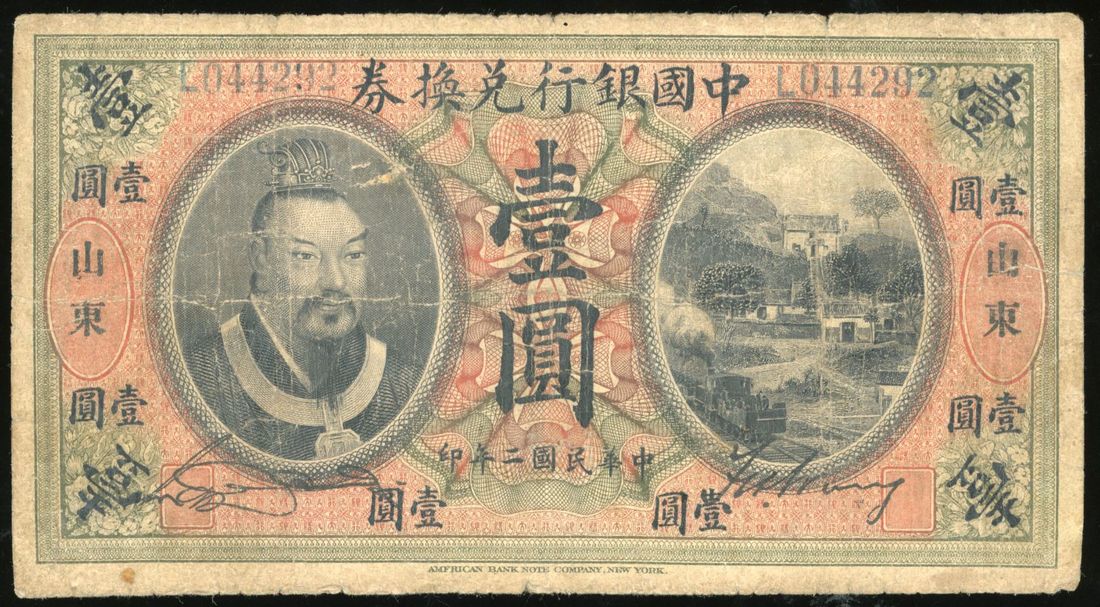 Bank of China, 1 yuan, Shandong, Year 2(1913), serial number L044292, (Pick 30c), fine or above, viewing recommended, sold as seen no return.