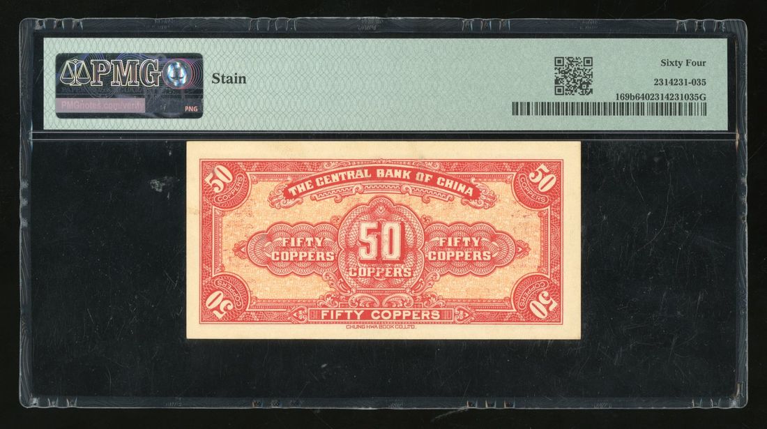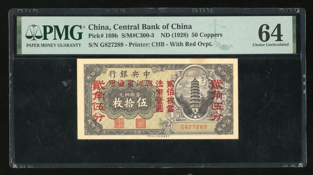 Central Bank of China, 50 coppers, ND (1928), serial number G827289, overprinted with "Restricted to Szechuan Province use",
