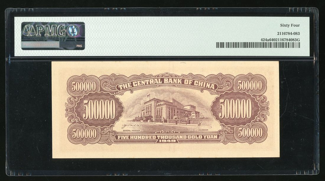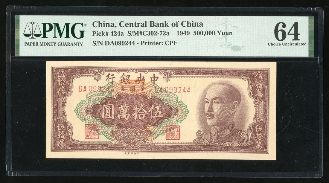 Central Bank of China, 500,000 yuan, 1949, serial number D099244, (Pick 424a), PMG 64