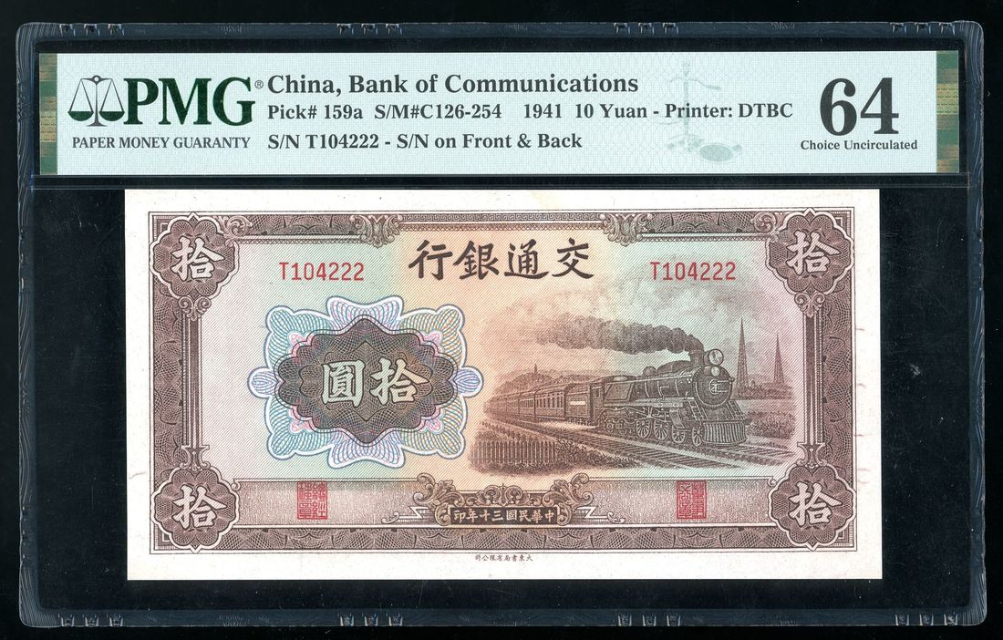 Bank of Communications, China, 10 yuan, Year 30 (1941), serial number T104222, (Pick 159a), PMG 64