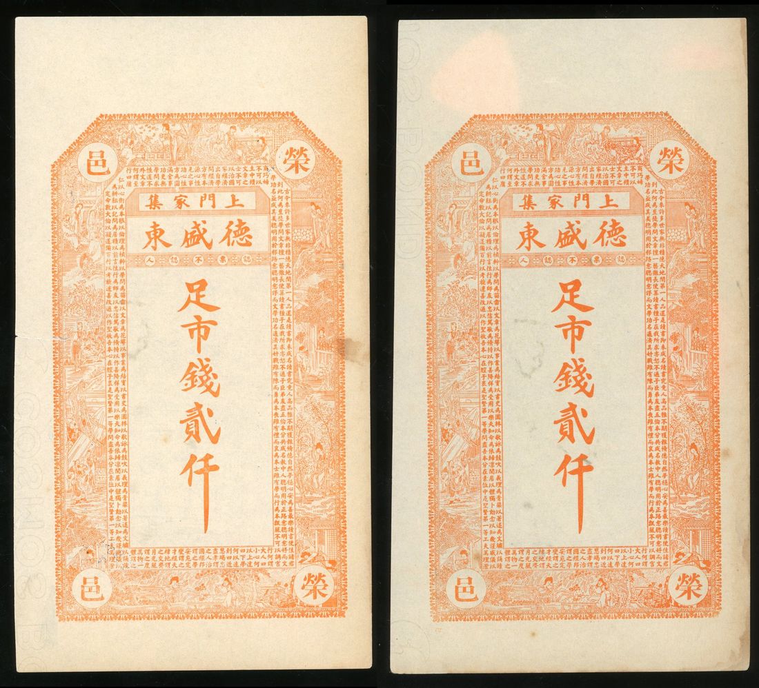 De Sheng Dong, Shandong Province, Private Issue, China, remainder 2000 cash, ND, reverse with different designs,