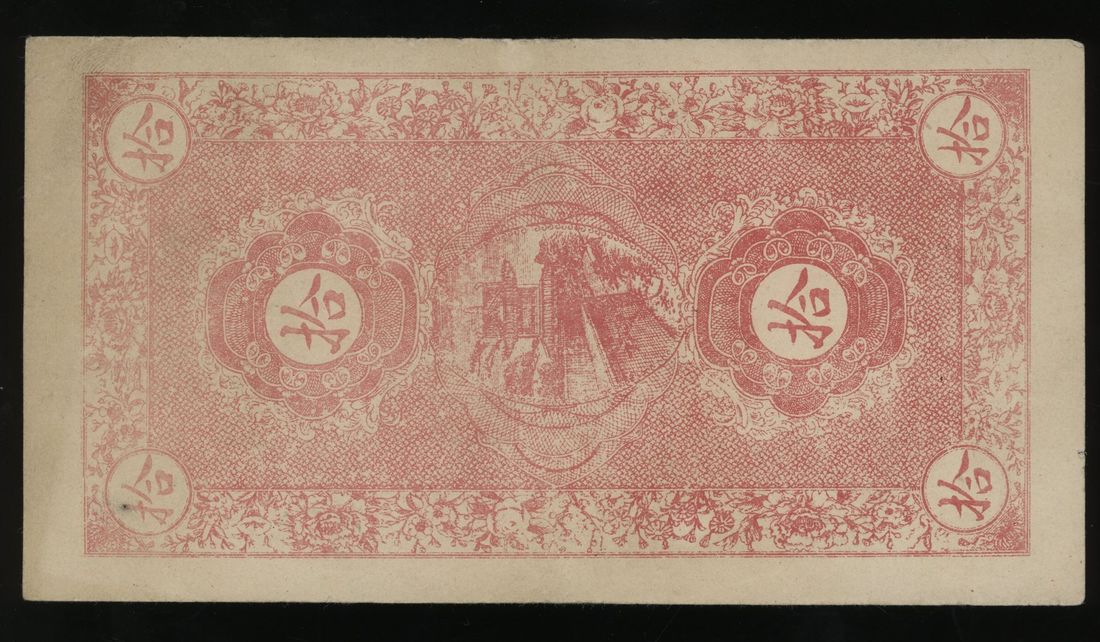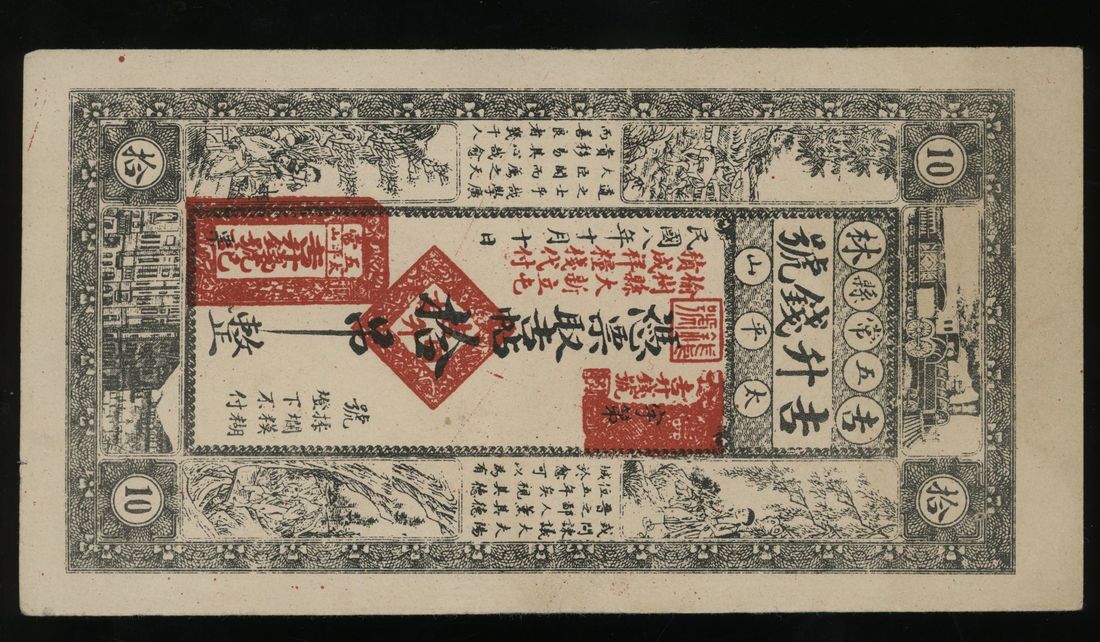 Ji Sheng Bank, Wuchang County, Kirin Province, Private Issue, China, remainder 10 tiao, Year 8 (1919), no serial numbers, vertical format,