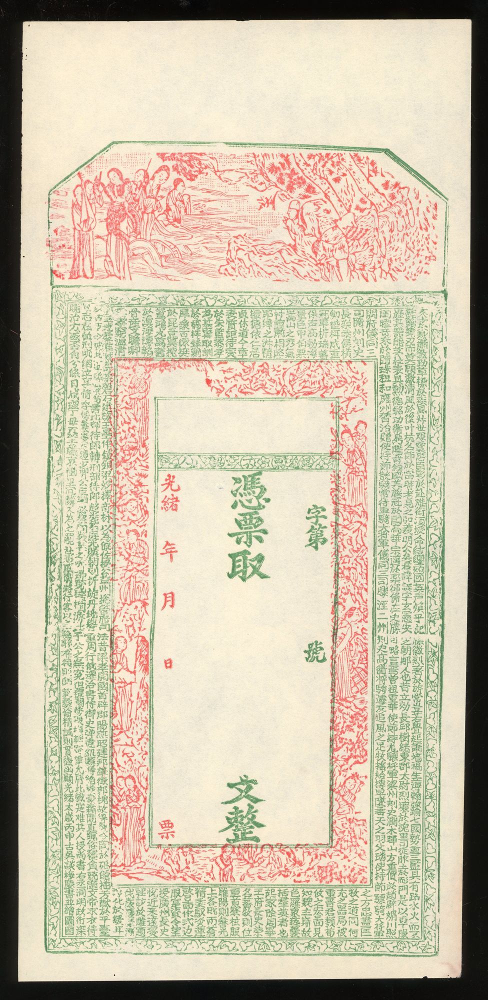 Private Issue, China, remainder note, Guangxu period (1875-1908), possible Sinkiang issue, uniface,