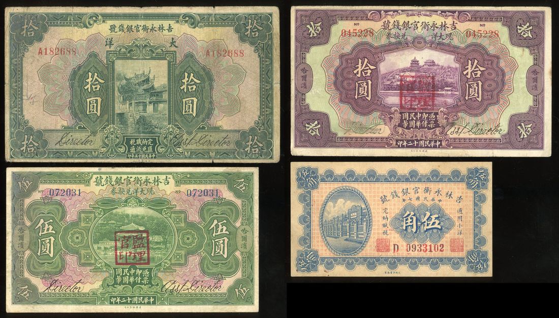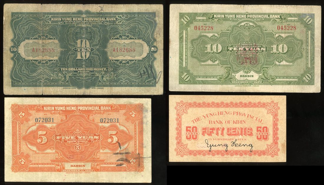 Kirin Yung Heng Provincial Bank, China, a group of 4x, including, -50 cents 1918,
