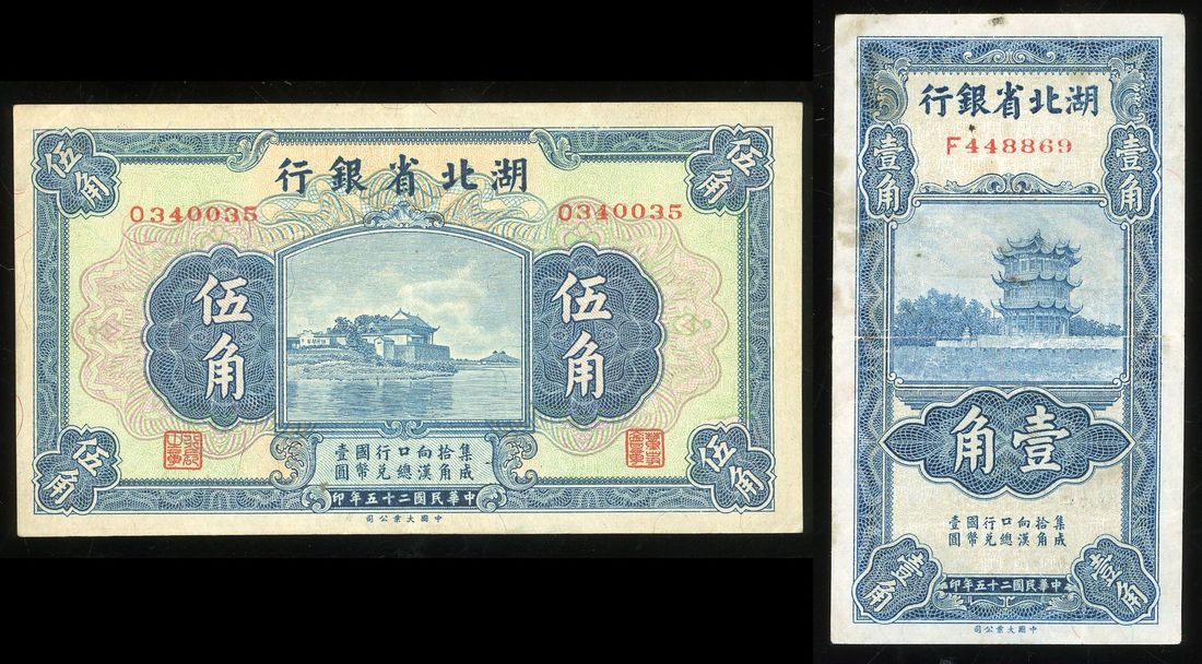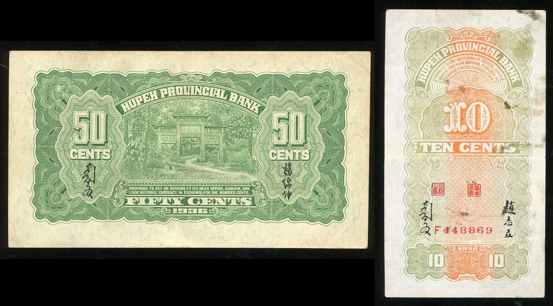 Hupeh Provincial Bank, China, a pair, including 10 and 50 cents, 1936, (Pick S2110, S2112), both very fine (2)
