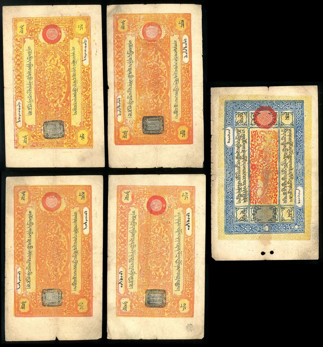 Tibet, China, a group of 5x, including 50 tam 1926-41 and 25 srang (4), (Pick 7, 10), balance fine (5)