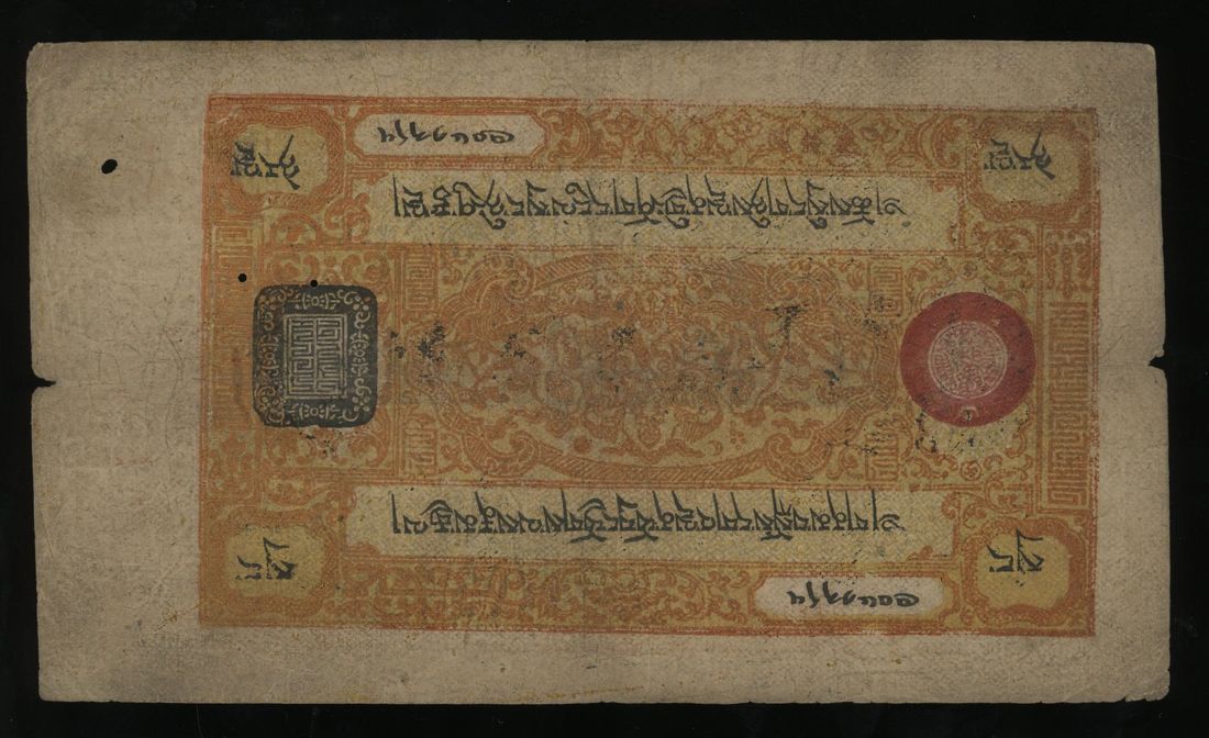 Tibet, China, 25 srang, 1687-1704(1941-1959), orange and black, red seal,