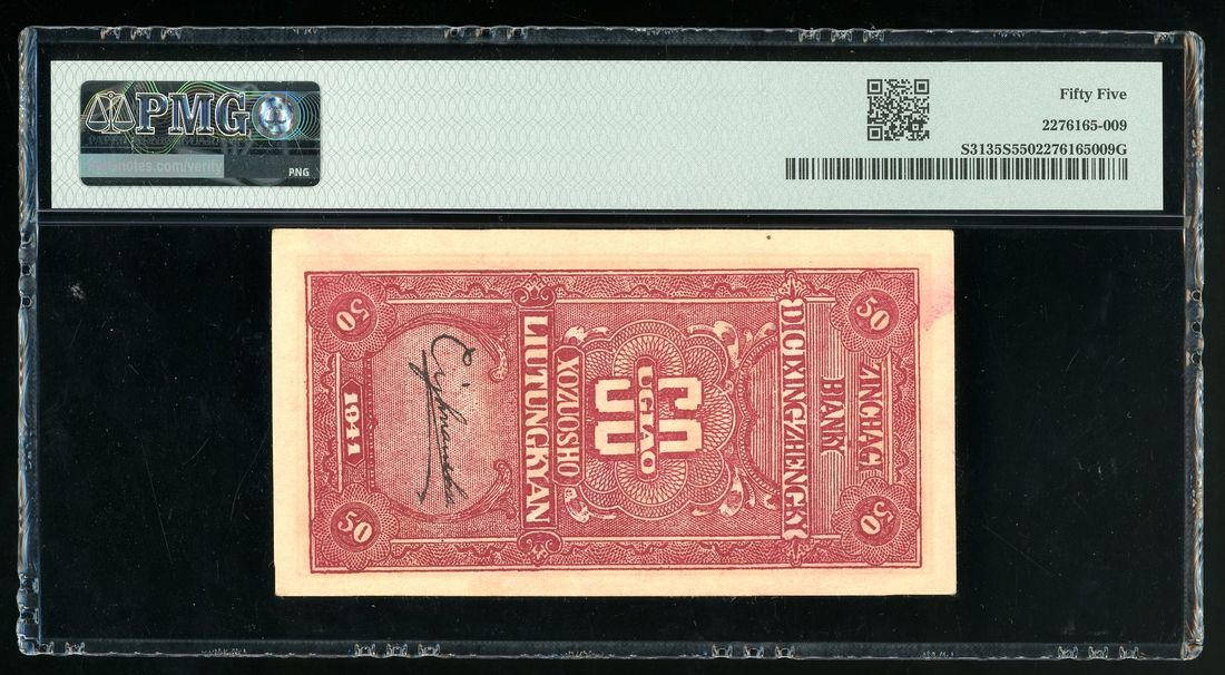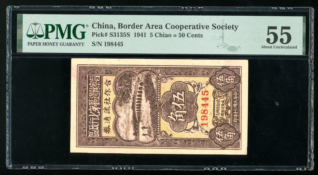 Border Area Cooperative Society, China, 5 chiao = 50 cents, Year 30 (1941), serial number 198445, (Pick S3135S), PMG 55