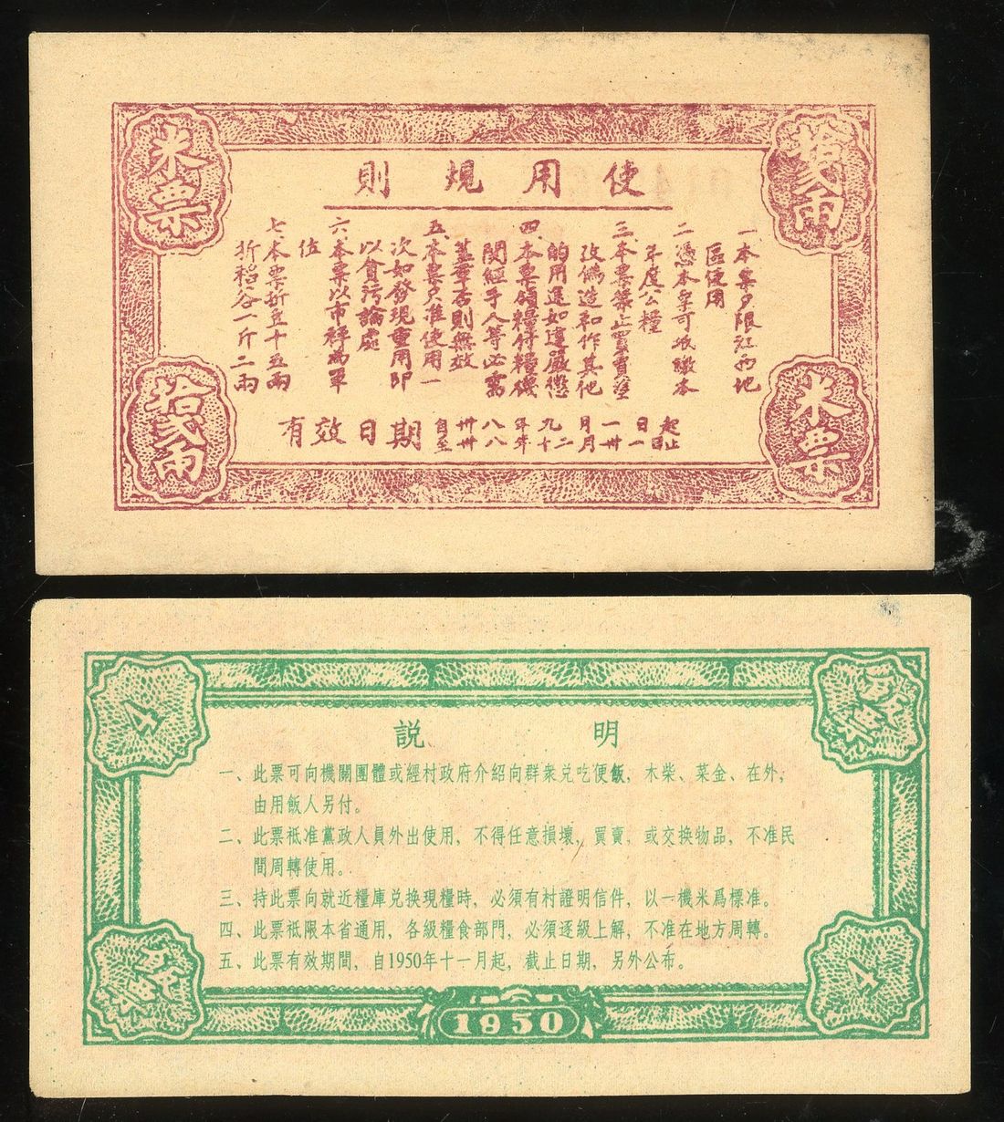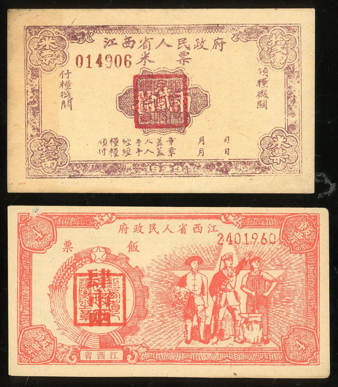 Kiangsi Province People's Government, China, a pair, including 12 taels of rice, 4 meals, 1950s, balance about uncirculated (2)