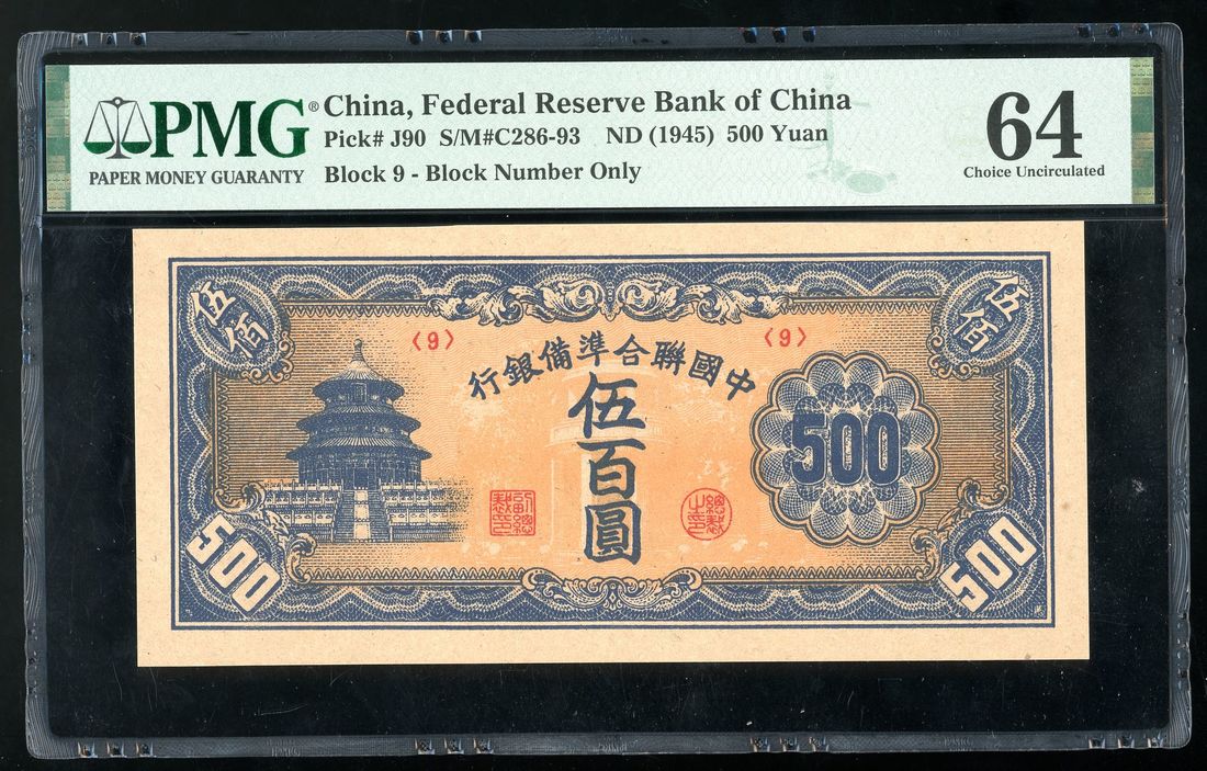 Federal Reserve Bank of China, 500 yuan, ND (1945), block 9, (Pick J40), PMG 64