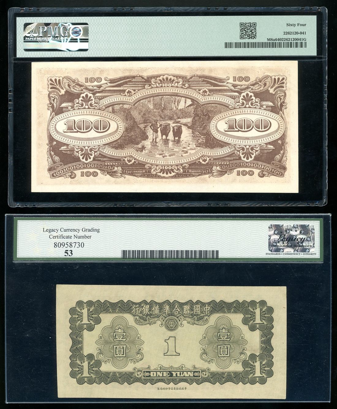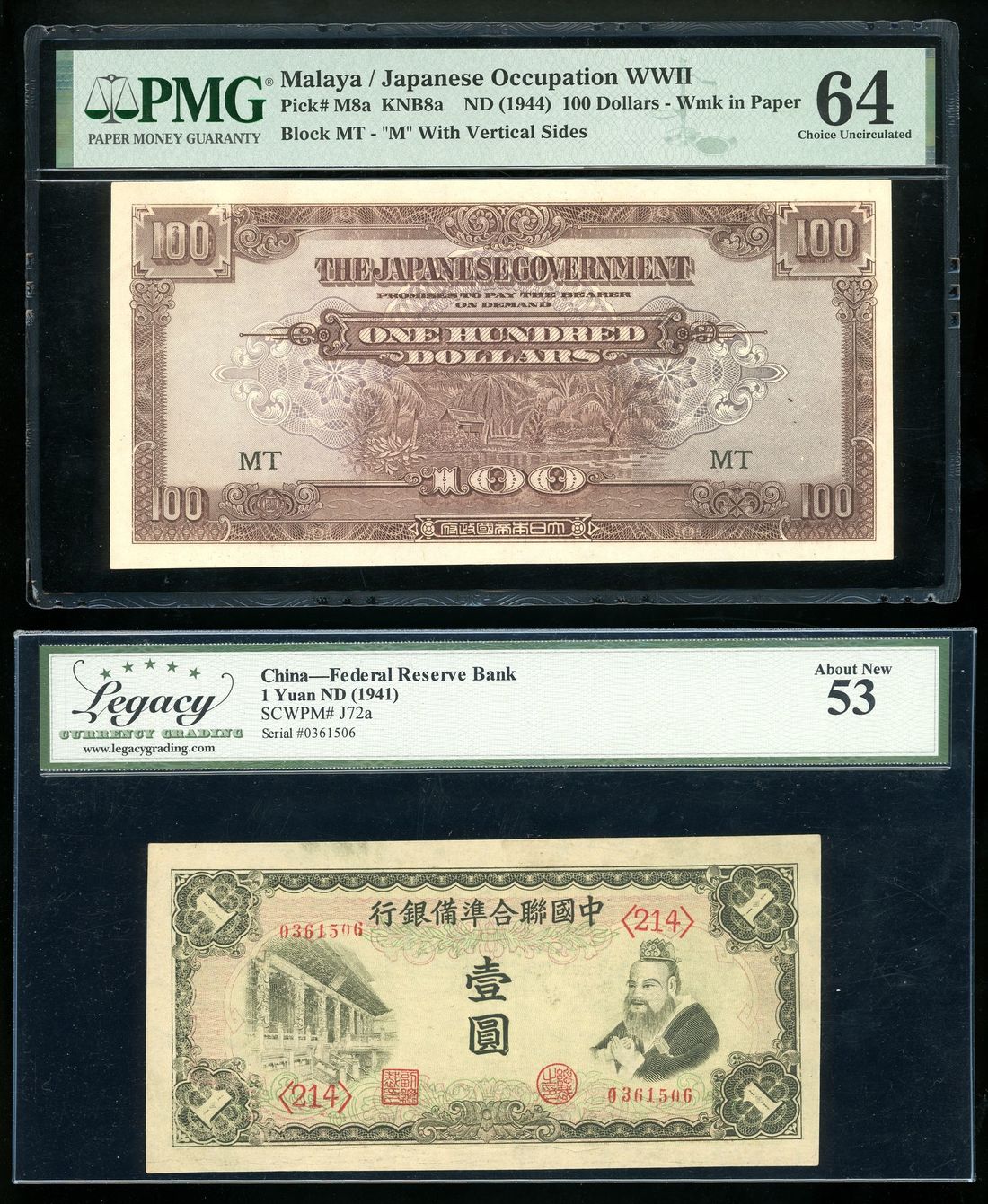 Japanese Occupation, a pair, including, -China, Federal Reserve Bank 1 yuan, ND (1941), LCG 53,