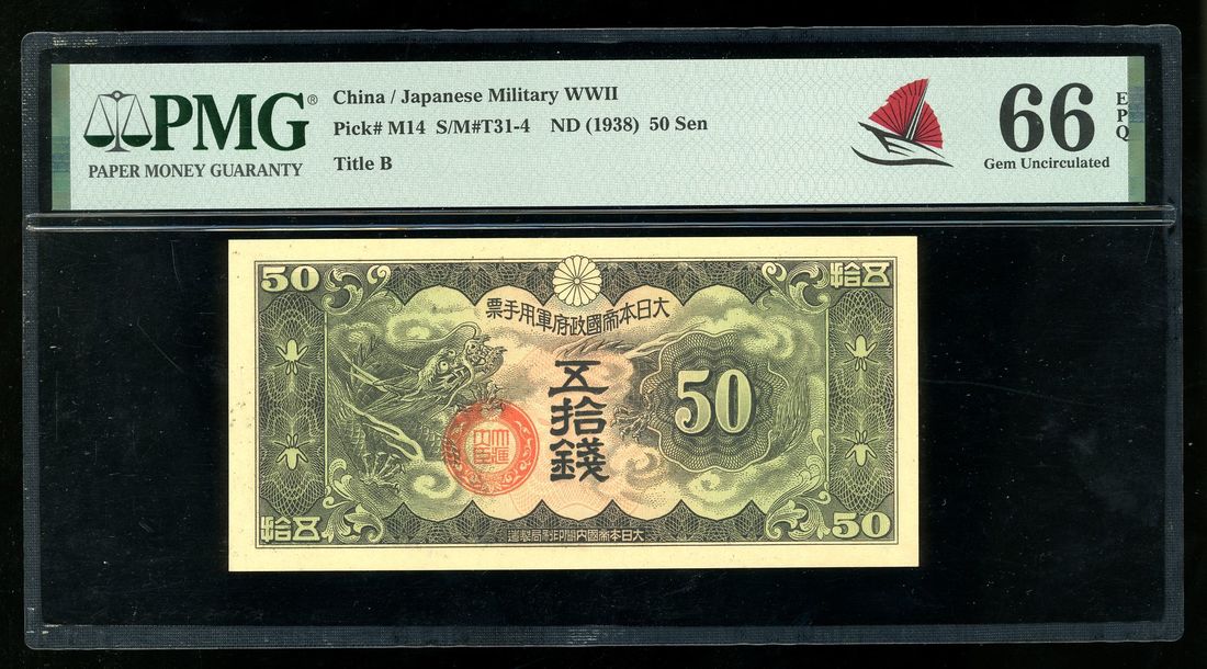 Japanese Military Issue, China, 50 sen, ND (1938), no serial number, (Pick M14), PMG 66EPQ
