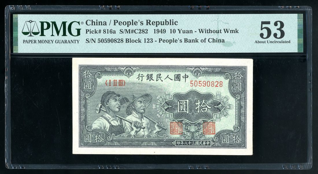 People's Bank of China, 1st Series Renminbi, 1949, 10 yuan, serial number I II III 50590828, "Factory Worker",