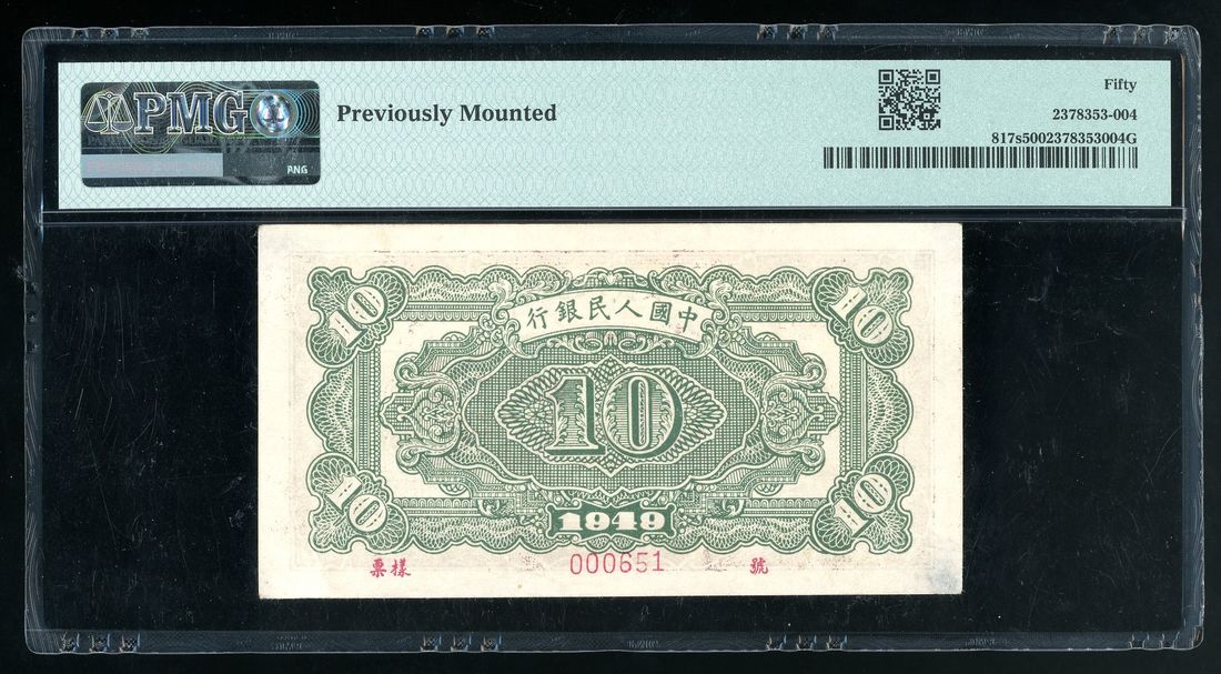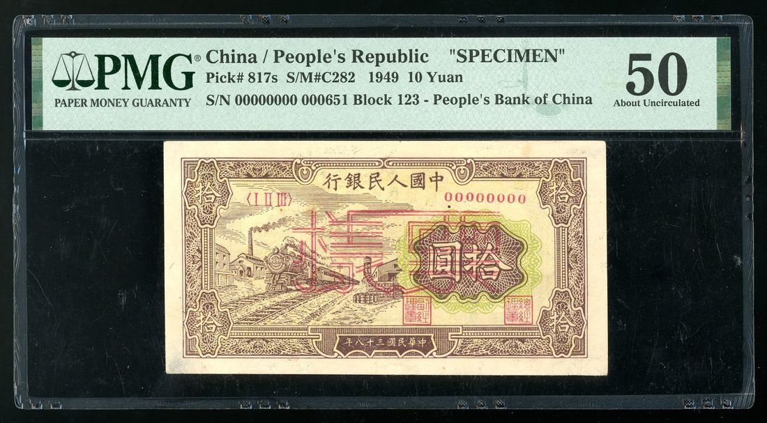 People's Bank of China, 1st Series Renminbi, 1949, specimen 10 yuan, specimen number 000651, "Yellow Train",