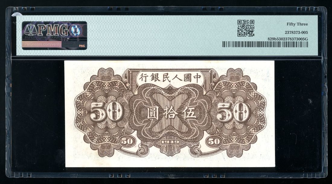 People's Bank of China, 1st Series Renminbi, 1949, 50 yuan, 7 digit serial number VI V VII 0809367, "Train",
