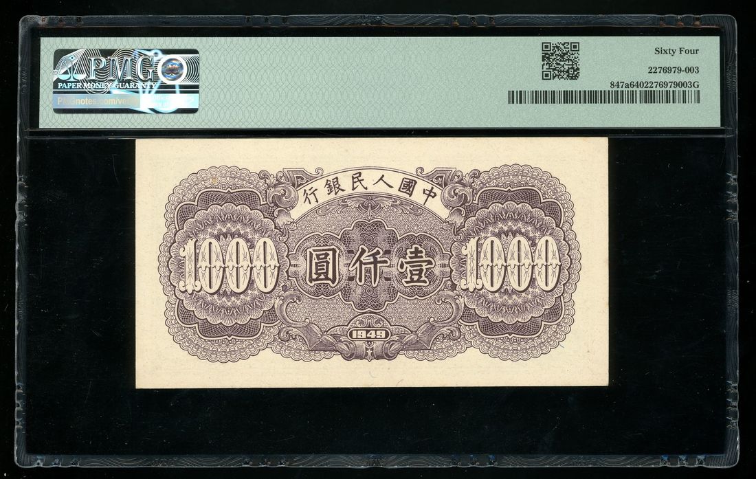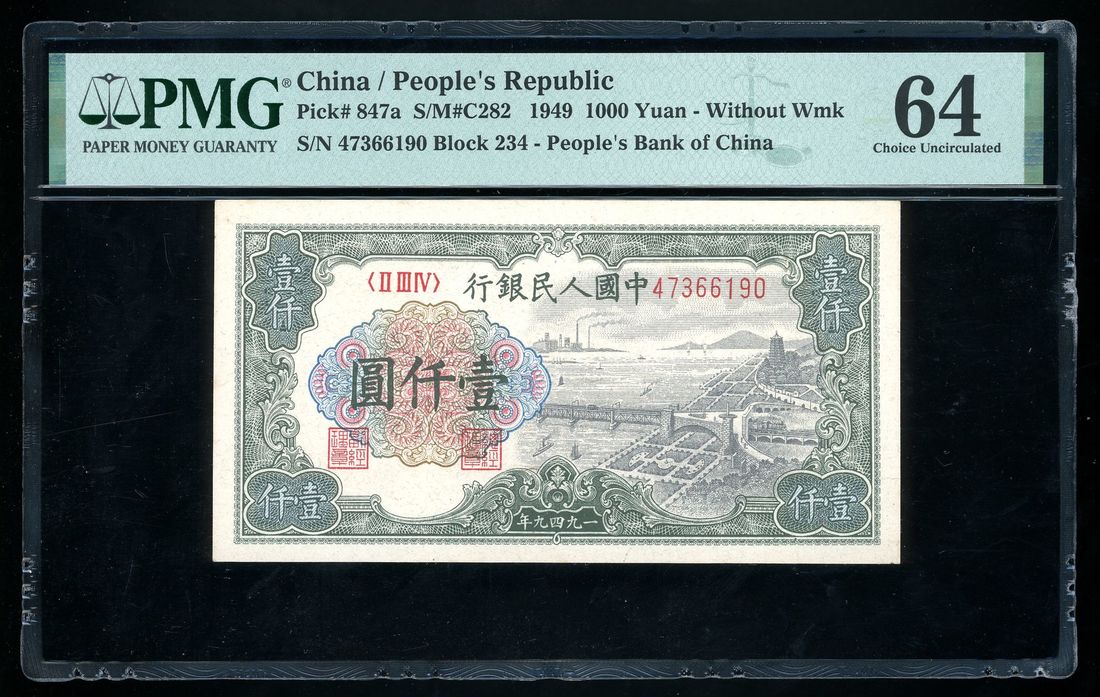 People's Bank of China, 1st Series Renminbi, 1949, 1000 yuan, serial number II III IV 47366190, (Pick 847a), PMG 64