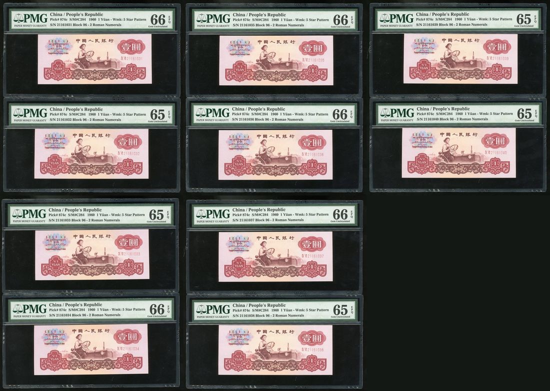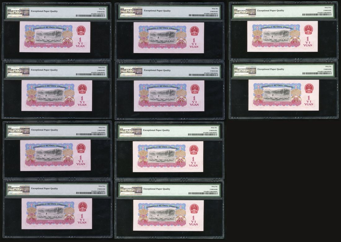 People's Bank of China, 3rd Series Renminbi, 1960, consecutive 1 yuan (10), serial numbers IX VI 211611031-40, (Pick 874c), PMG 65EPQ - 66EPQ (10)