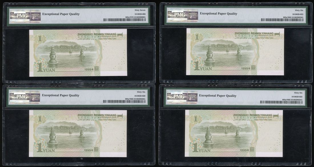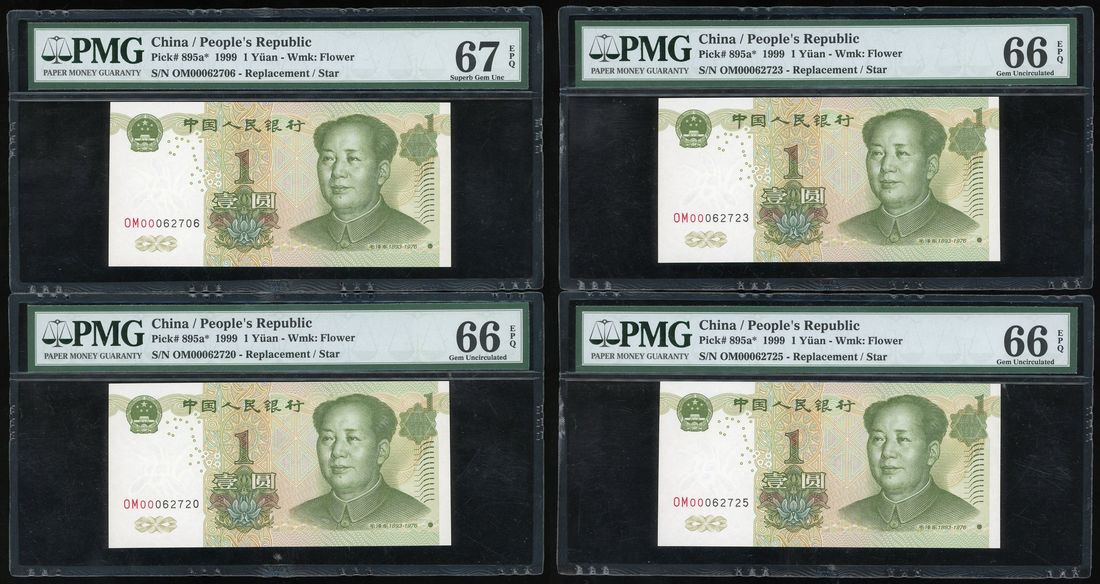 People's Bank of China, 5th Series Renminbi, a group of 4x replacement 1 yuan, 1999, close serial numbers OM00 062706/20/23/25,