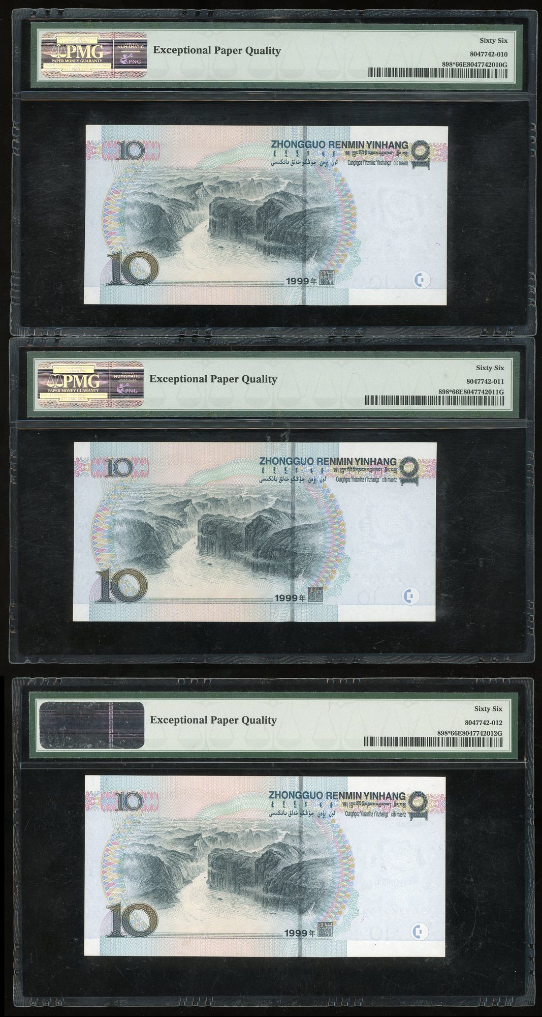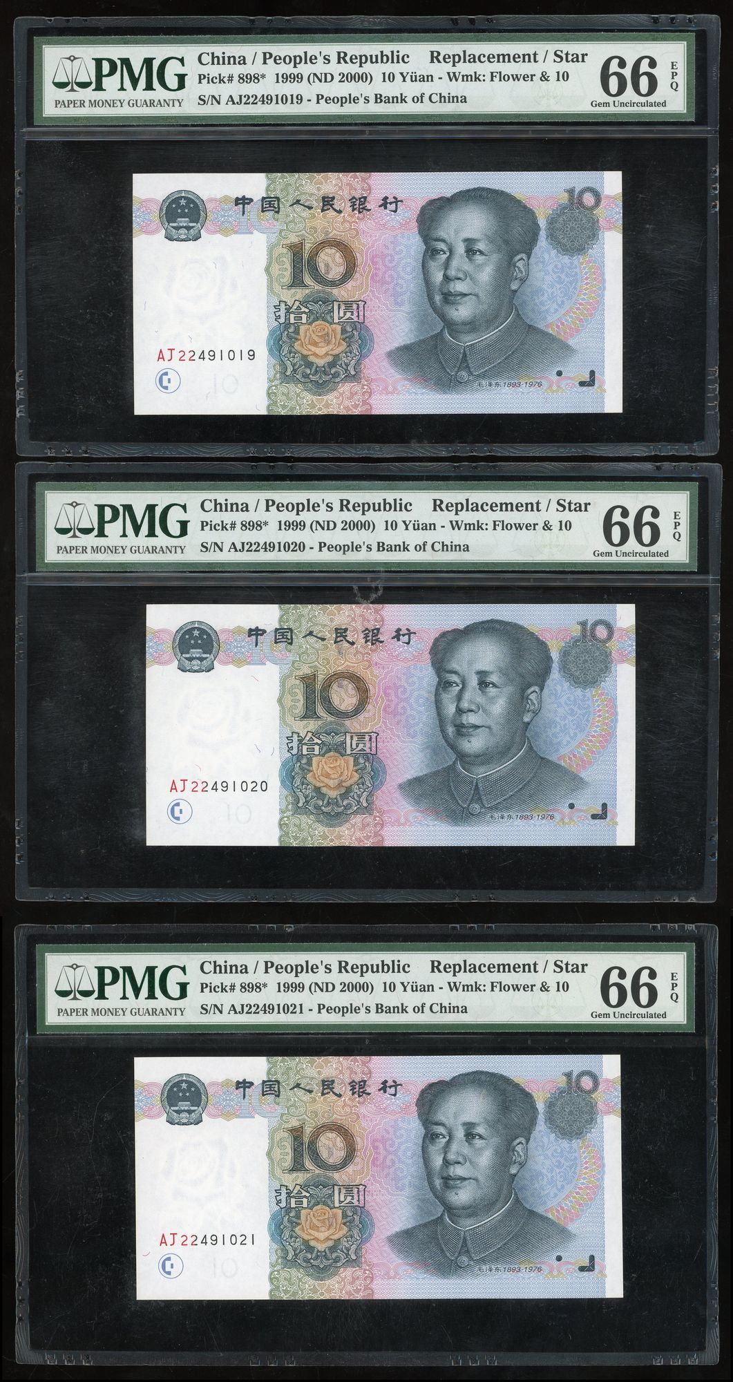 People's Bank of China, 5th Series Renminbi, a consecutive trio of replacement 10 yuan, 1999, serial numbers AJ22 491019-21,