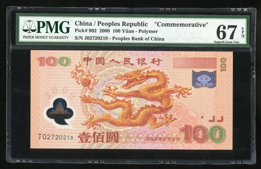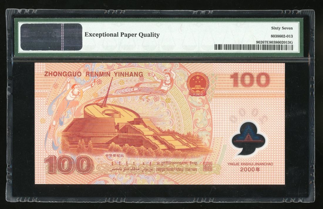 People's Bank of China, commemorative 100 yuan, 2000, serial number J02720218, (Pick 902), PMG 67EPQ