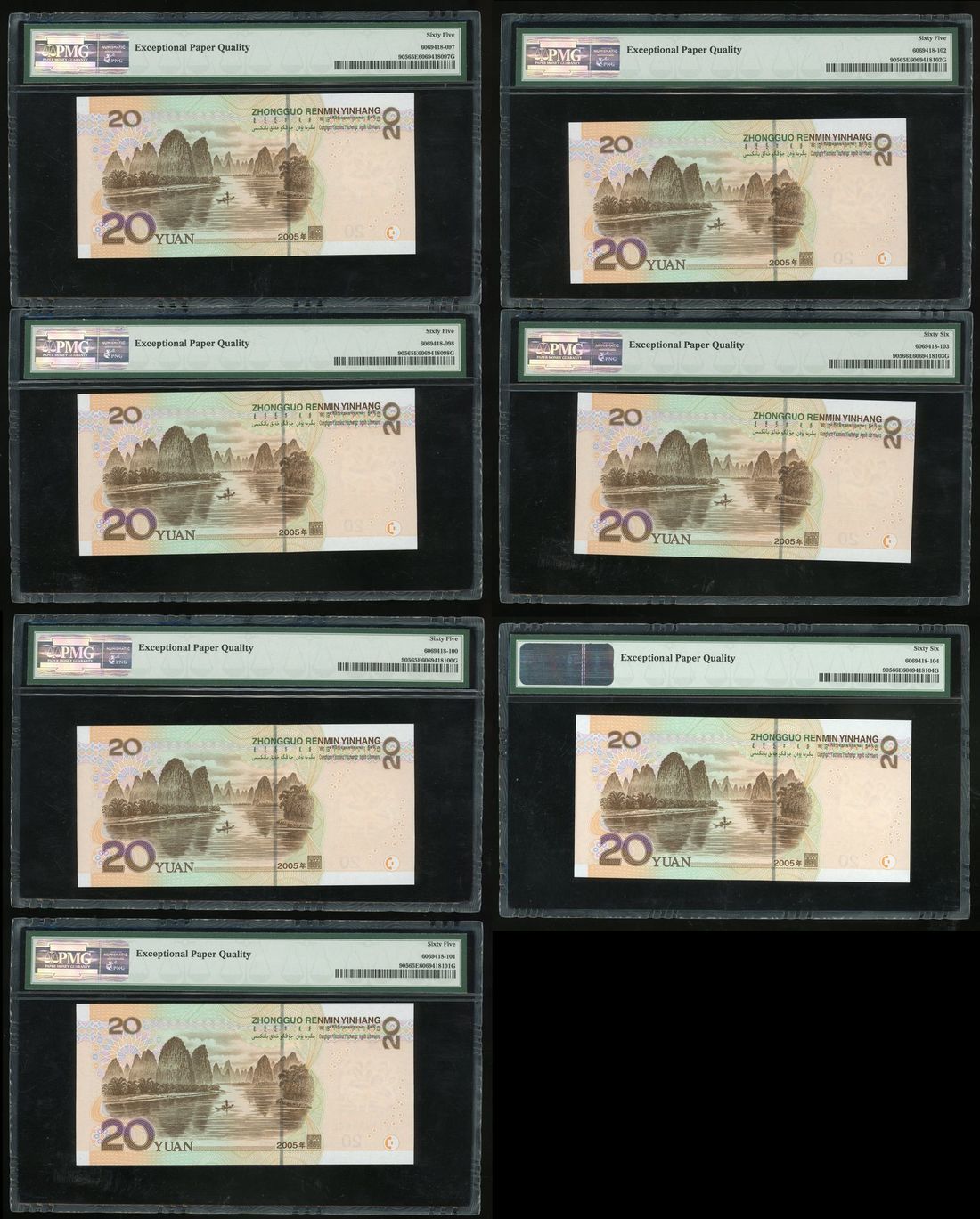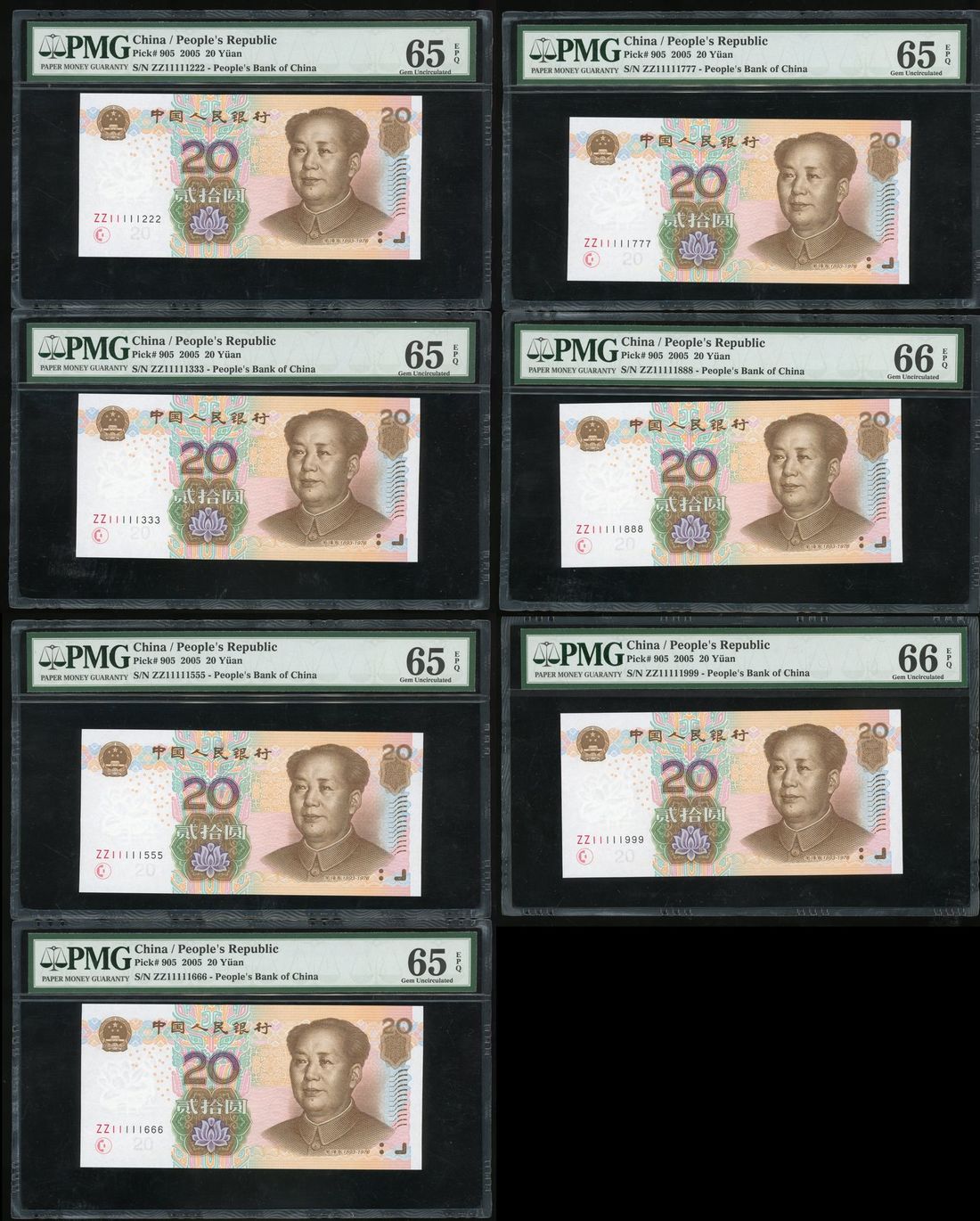 People's Bank of China, 5th Series Renminbi, 2005, 20 yuan (7), serial numbers, ZZ11111222/333/555/666/777/888/999,