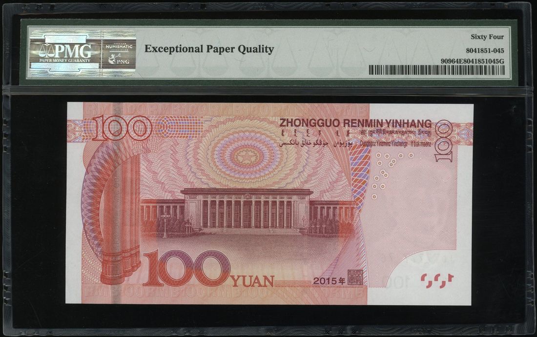 People's Bank of China, 5th Series Renminbi, 2015, 100 yuan, serial number JD77777776, (Pick 909), PMG 64EPQ