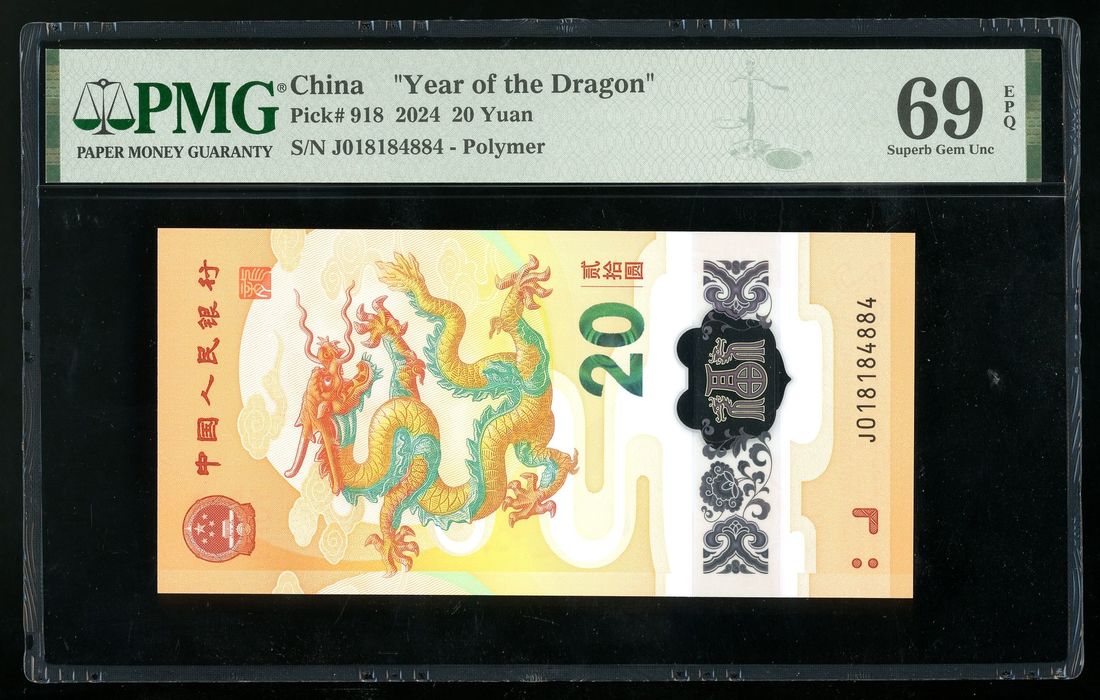 People's Bank of China, commemorative polymer 20 yuan, 2024, serial number J018184884, (Pick 918), PMG 69EPQ
