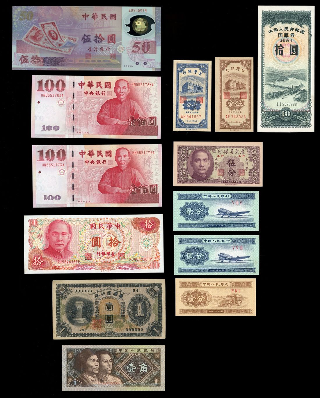 China Banknotes, a group of 13x, including, China (6), Taiwan (7), balance good extremely fine to uncirculated (13)