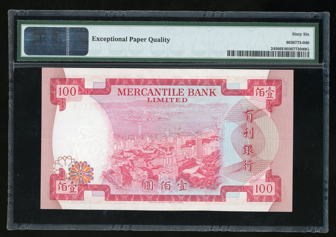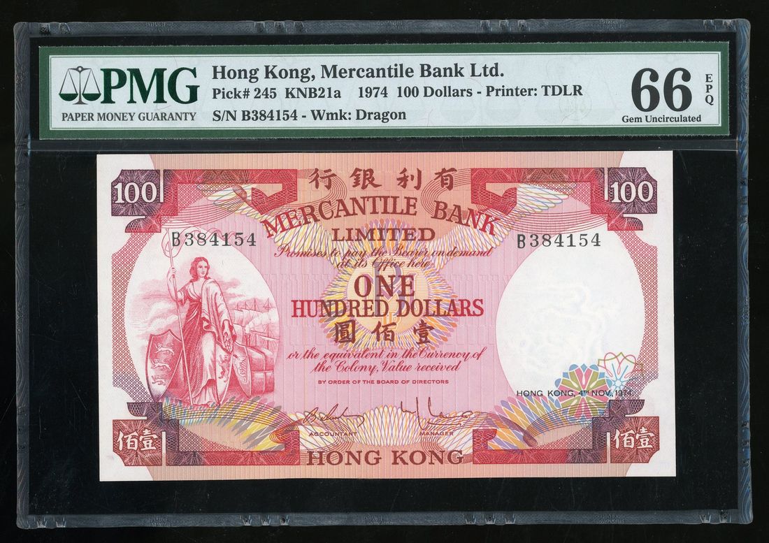 Mercantile Bank, Hong Kong, $100, 4.11.1974, serial number B384154, (Pick 245), PMG 66EPQ