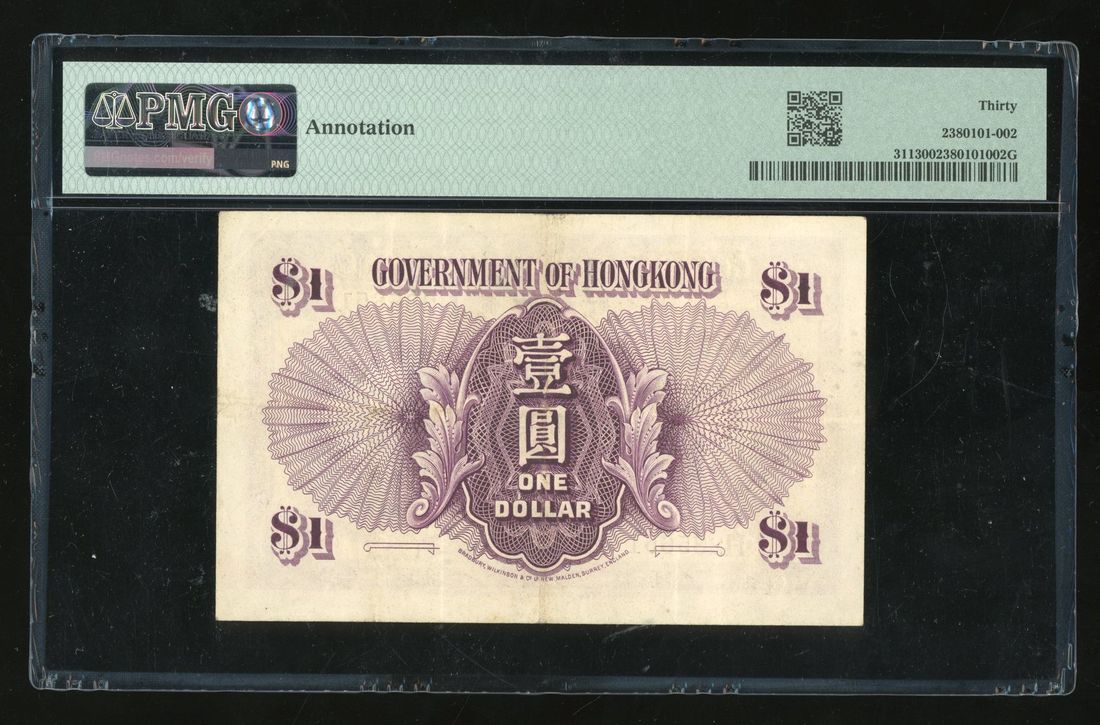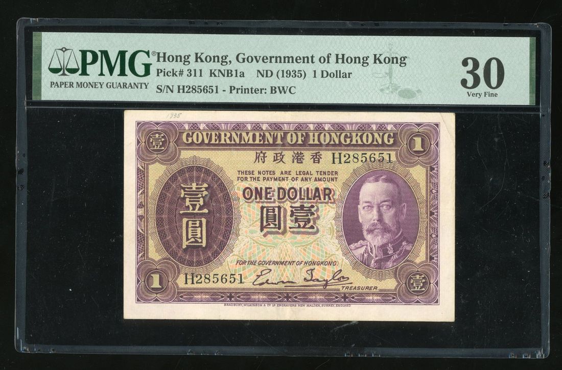 Government of HongKong, $1, ND (1935), serial number H 285651, (Pick 311), PMG 30, Annotation