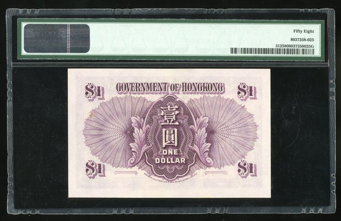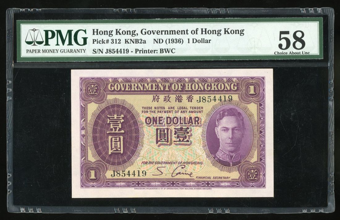 Government of HongKong, $1, ND (1936), serial number J854419, (Pick 312), PMG 58