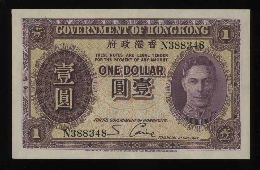 Government of HongKong, $1, ND(1936), serial number N388348, purple on multicolour underprint, George VI at right,