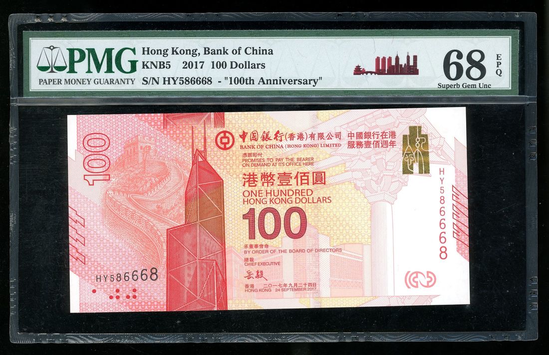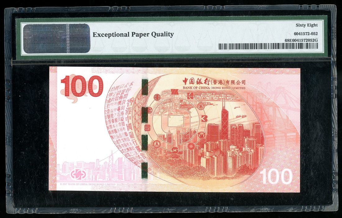 Bank of China, Hong Kong, $100, 24.9.2017, serial number HY586668, PMG 68EPQ.