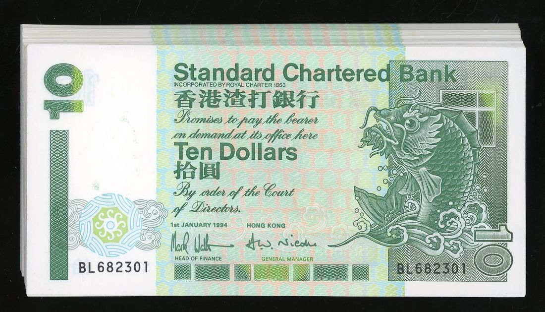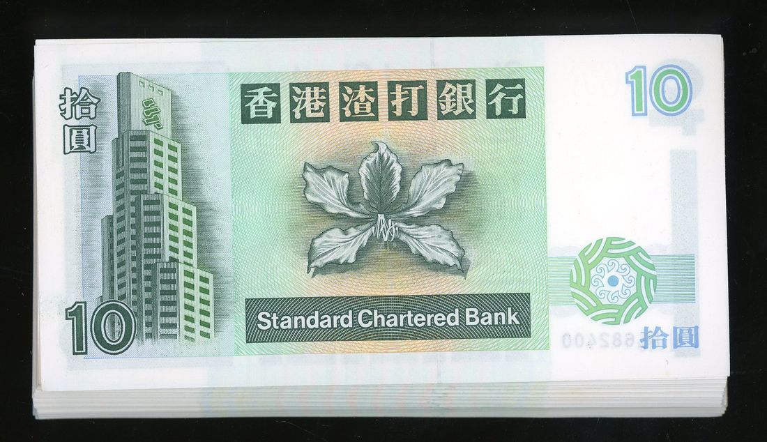 Standard Chartered Bank, Hong Kong, consecutive run of $10 (100), 11.1.1994, serial numbers BL682301-400, (Pick 284), minor handling on first and last note, otherwise uncirculated (100)