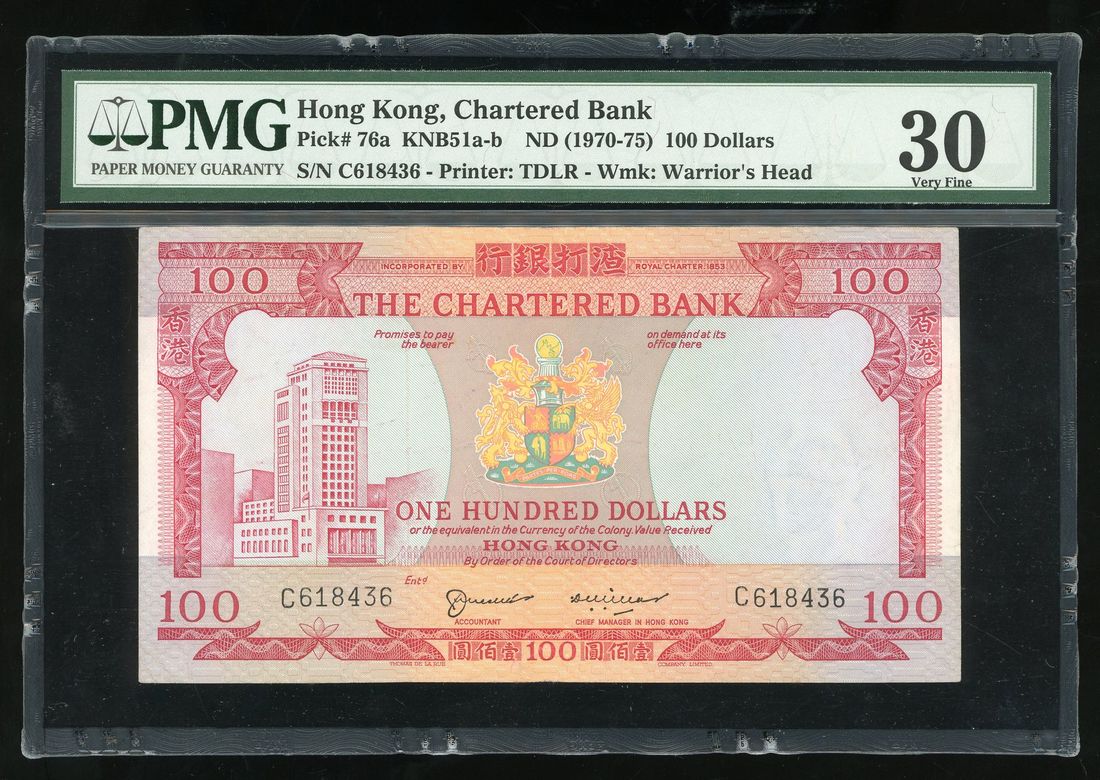 Chartered Bank, Hong Kong, $100, ND (1970-75), serial number C618436, (Pick 76a), PMG 30